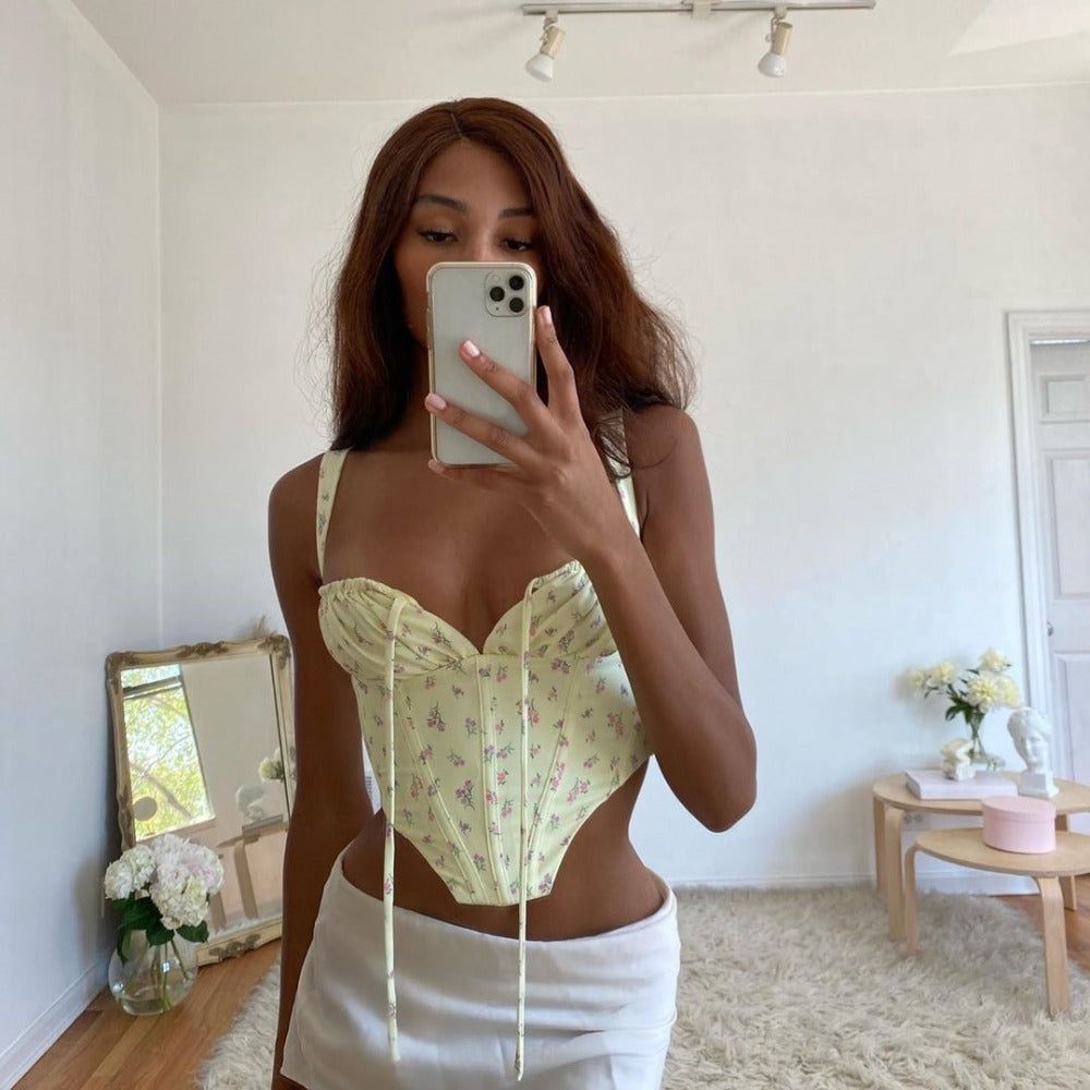 Radiate summer vibes with our Sunflower Floral Print Corset Bustier Crop Top. This charming and flirty crop top features a vibrant sunflower print that captures the essence of the season. The corset-inspired design accentuates your curves and creates a flattering silhouette. while the adjustable straps provide a customizable fit. Crafted with a lightweight and breathable fabric. this top keeps you cool and comfortable on hot summer days. Whether you're heading to a music festival. a garden party. or a casual outing. the Sunflower Floral Print Corset Bustier Crop Top is the perfect choice for effortlessly chic style. Embrace the beauty of blooming flowers and let this top be your go-to piece for a fresh and fashionable summer look.