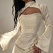 Wrapped at the hips. the "Swan"drapes to the slightly grooved hem. and cascades delicately across the skirt. down through the arms.Extended sleeves with flared cuffs add a bit of drama.It's lined for comfort and has a zip and button on the back for easy on and off.