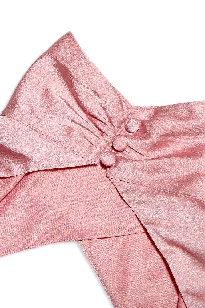"Swan"is made from lustrous silk satin and has lots of pretty details on the bias.The front crisscross halterneck is stunning. and the beautifully draped smock neckline sits on the front of our incredible bodice herringbone to really cinch the waist.