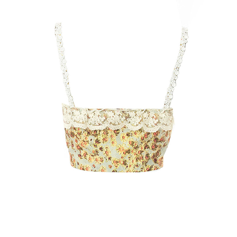 Sometimes a statement summer-approved corset is all you need. Delicate lace detailing takes this floral tank top to the next level of style and sophistication. The cami straps and neckline feature intricate lace accents. adding a touch of femininity and elegance to the overall design. For the perfect fit and easy wear. this crop top is equipped with a hook-and-eye closure at the front and lace-up closure at the sides. Whether you pair it with high-waisted bottoms or layer it over a dress. this crop top is sure to elevate your style game.
