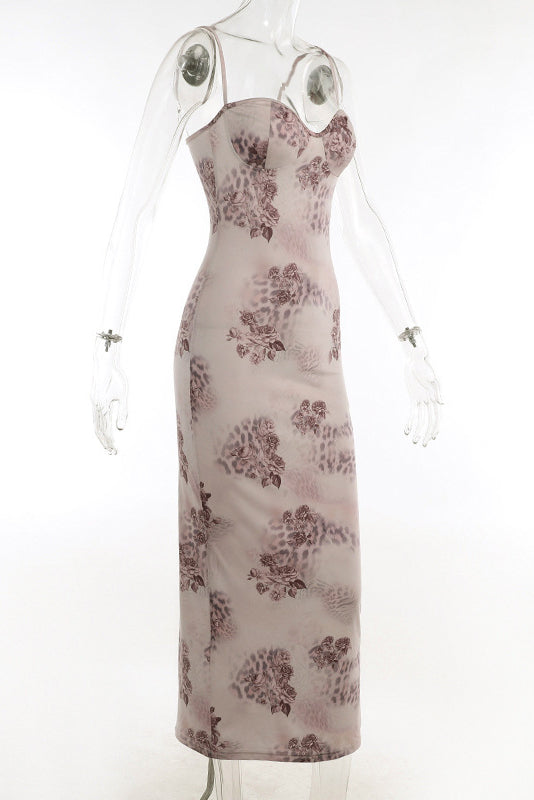 If you're looking for something yet romantic. look no further than floral printed mesh dresses. This mesh maxi dress in our boutique wows with an allover blooming floral print in complimentary shades of dark purple and fuchsia. featuring a darling lace-trimmed sweetheart neckline. a stretchy fitted silhouette with a lace-up closure at back. adjustable spaghetti straps on the shoulders. and a semi-sheer long dress cut with a back slit for dance. This vintage slip maxi dress is a whimsical summer option for women. Pair this floral maxi with stiletto heels for a playful day-to-night outfit for any special occasion.
