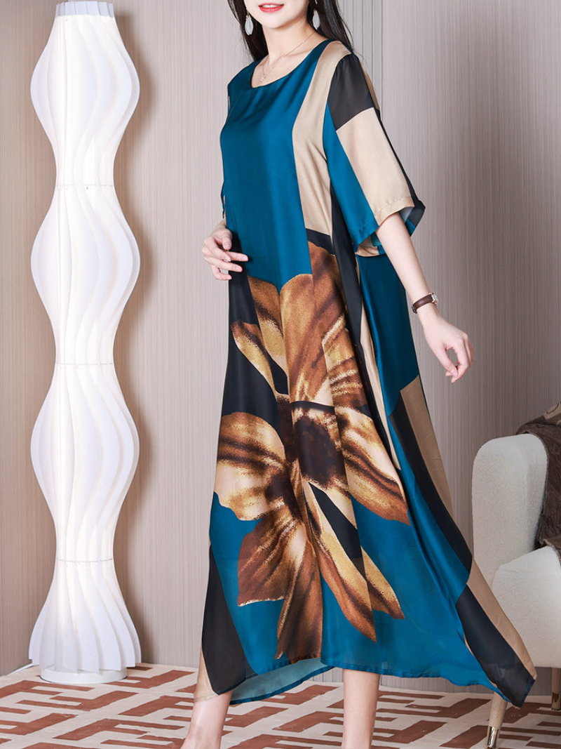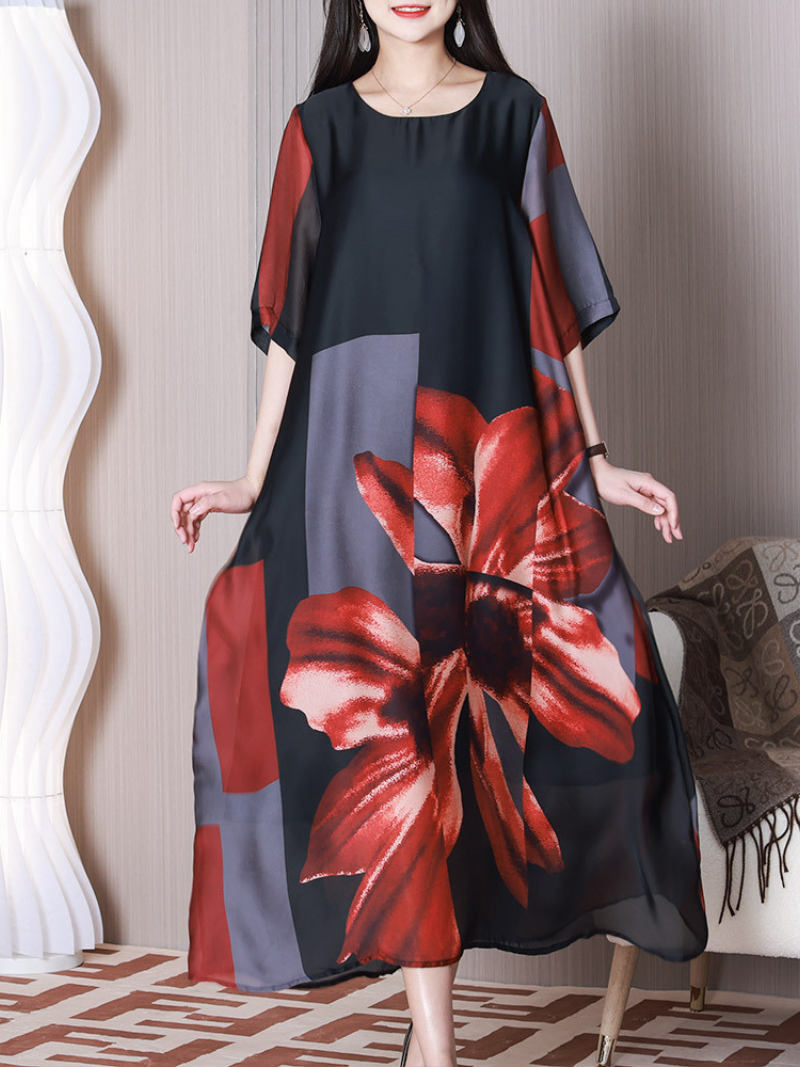 A women's Tencel loose round neck A-line dress is a comfortable and Eco-friendly dress that is made from Tencel fabric. which is derived from sustainable eucalyptus trees. This type of dress features a relaxed. loose fit with an A-line silhouette that flares out from the waist to the hem. The round neckline adds a classic touch to the dress. while the Tencel fabric gives it a soft. silky feel that is gentle on the skin. It also has different color varieties like blue/red and black. The loose fit and A-line shape makes it easy to move around in. and the breathable fabric is perfect for warm weather.