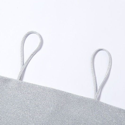 Our Text Me Sparkle Crop Top features diamond-likeglitter embellishments throughout. straight spaghetti straps. a cropped cut. a flattering square neckline. and hook-and-eye closure in the back with a slit.