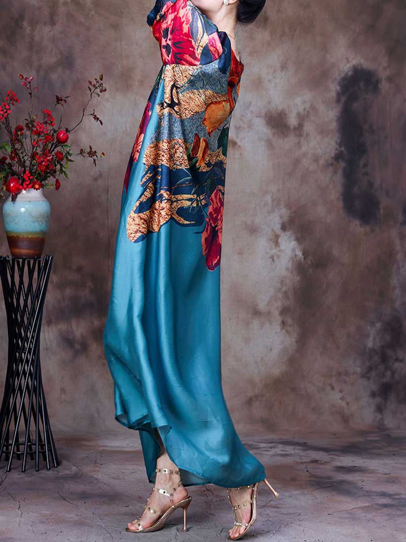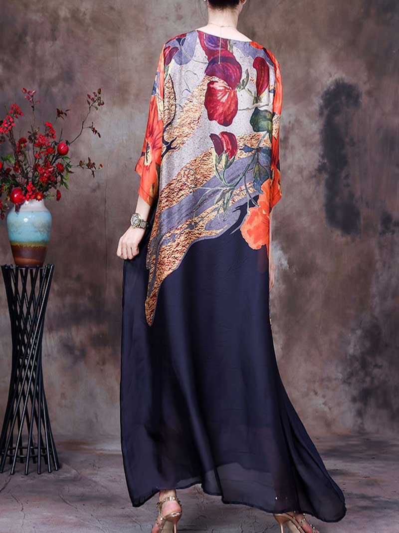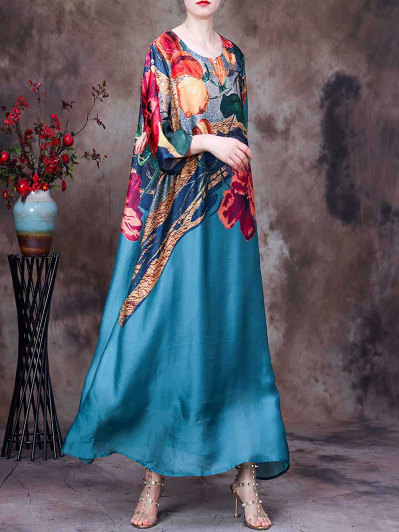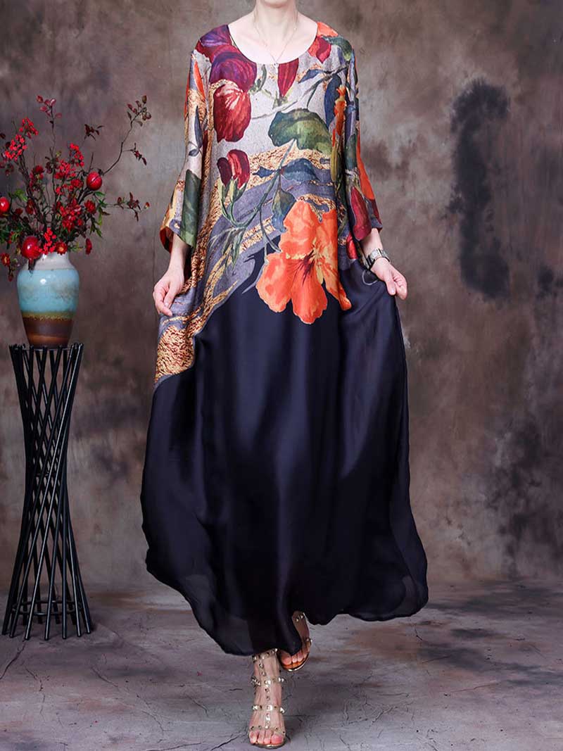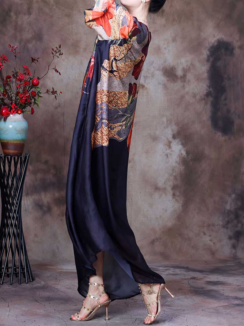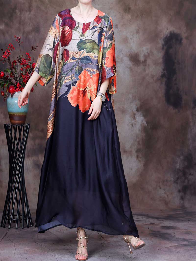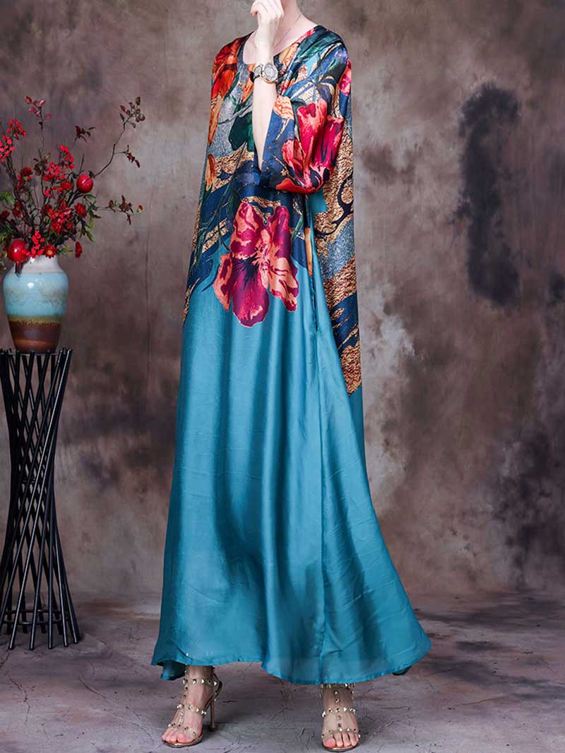 The Lazy Song Printing Maxi Dress features Size Details Bust 112cm Shoulder 40cm Sleeve 36cm Length 119-129cm. Available in black and blue. It's made from a weightless polyester fabrication that drapes beautifully around your curves for easy movement. The top part of the dress has a beautiful pattern on it. which is made up of different colors.