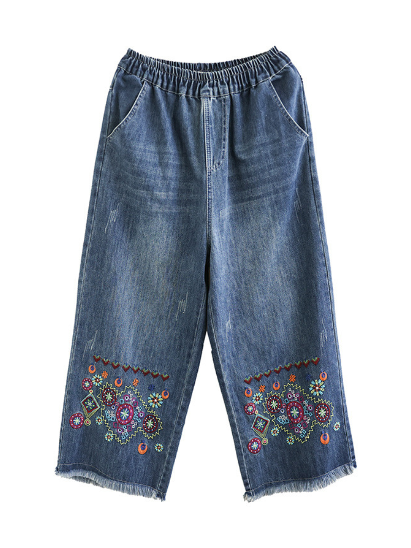 The Lost Heart Women's Denim Elastic Waist Bottom Pants are a timeless and versatile addition to any wardrobe. Crafted from durable denim material. these pants offer both style and comfort. ensuring they will become a staple piece in your everyday outfits.Available in a classic blue color. these pants exude a sense of casual sophistication. The deep blue hue adds a touch of richness to your ensemble and pairs well with a variety of tops and accessories. Whether you're going for a laid-back look or dressing up for a night out. these pants will effortlessly elevate your style.Featuring an elastic waistband. these pants provide a comfortable and flexible fit. The elastic waist ensures easy wear and removal. making them convenient for everyday wear. Whether you're sitting. standing. or moving around. these pants will move with you. providing freedom of movement and all-day comfort.The size details of these pants are available in M (Medium) and L (Large). This sizing range caters to a variety of body types