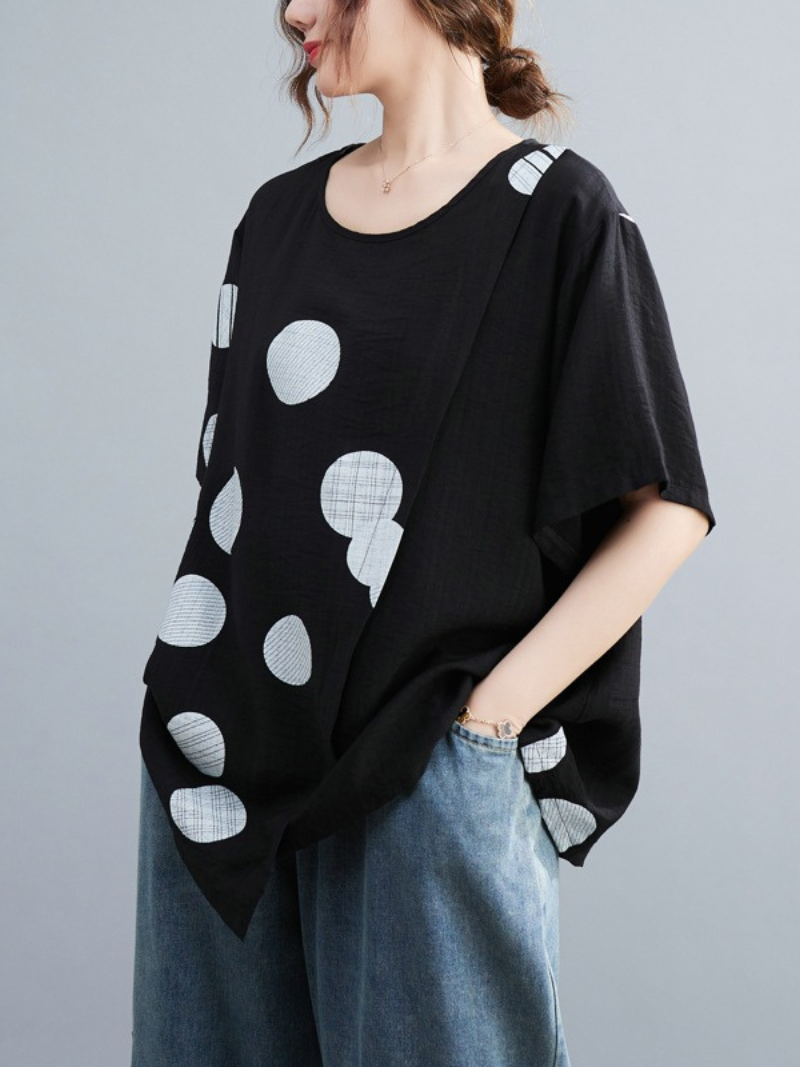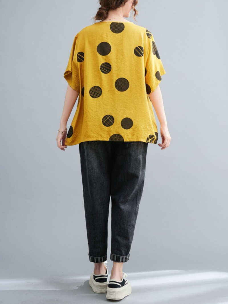 A feminine style of the round neck tops is made by using quality cotton blend fabrics. The fabric is soft and comfortable to wear. while it's elastic enough to adapt to your body shape. Its thin neck adds a youthful touch. while the patterned dots give it style and charm. It's easy to wear with jeans or leggings and looks cute with a pair of boots or sneakers on casual outings.
