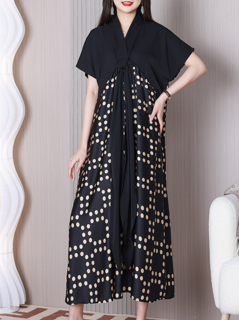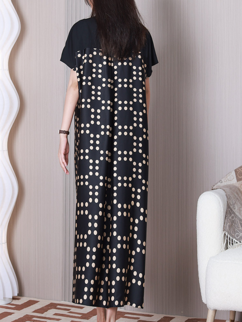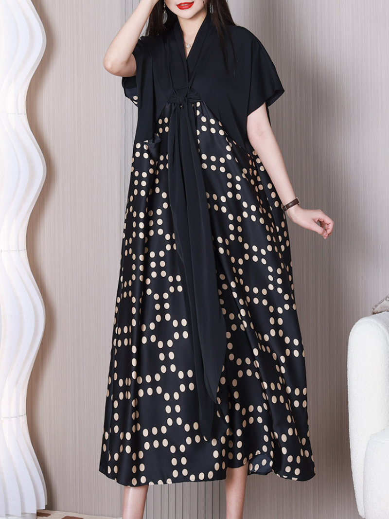 This a-line dress is made of polyester material and is black in color. It features a V-neck design. middle waist. and short sleeves. The pattern is a combination of stripes and checks. adding a unique touch to the dress. The a-line cut provides a comfortable and flattering fit for various body types.It has a middle waistline that accentuates the figure. while the A-line cut provides a flattering silhouette that suits most body types. The dress is available in various colors and sizes to suit different preferences and occasions. Perfect for both casual and formal events. this dress is a versatile addition to any wardrobe.
