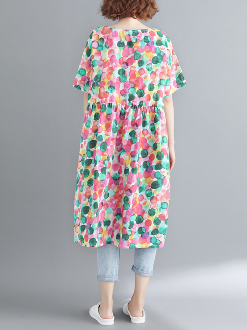 Discover our stylish Women's Large Size Tops. designed for both comfort and fashion. Made from premium Polyester material. these tops are incredibly soft and breathable. ensuring a comfortable fit all day long. The charming dot pattern adds a touch of playfulness to your outfit. while the round neck collar enhances your neckline. With short sleeves. these tops are perfect for warmer weather or layering under a cardigan or jacket. Available in a range of sizes to cater to different body types. these tops offer a flattering and relaxed silhouette. Elevate your everyday style with our Women's Large Size Tops and embrace effortless chic.