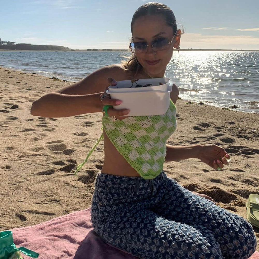 This refreshing argyle knit crop is perfect for strolling down a sandy beach or enjoy a new outing! Crafted with stretchy jersey and spandex. embellished with a pointelle handkerchief profile in checked patterns. featuring a halter neck along with a tie on the neck. a backless styling tailored with a rear tie. and ended up with an asymmetric hem. Find more unique women's knit tops or trendy clothing in our boutique. and complete it with anything-depending on the look you want.