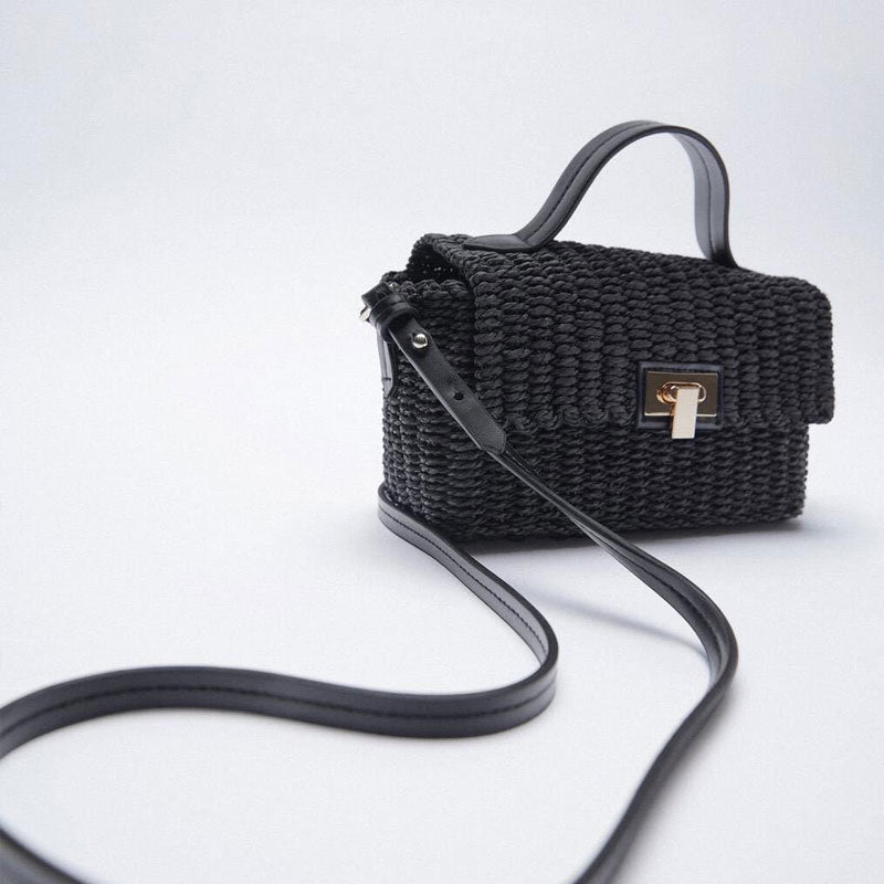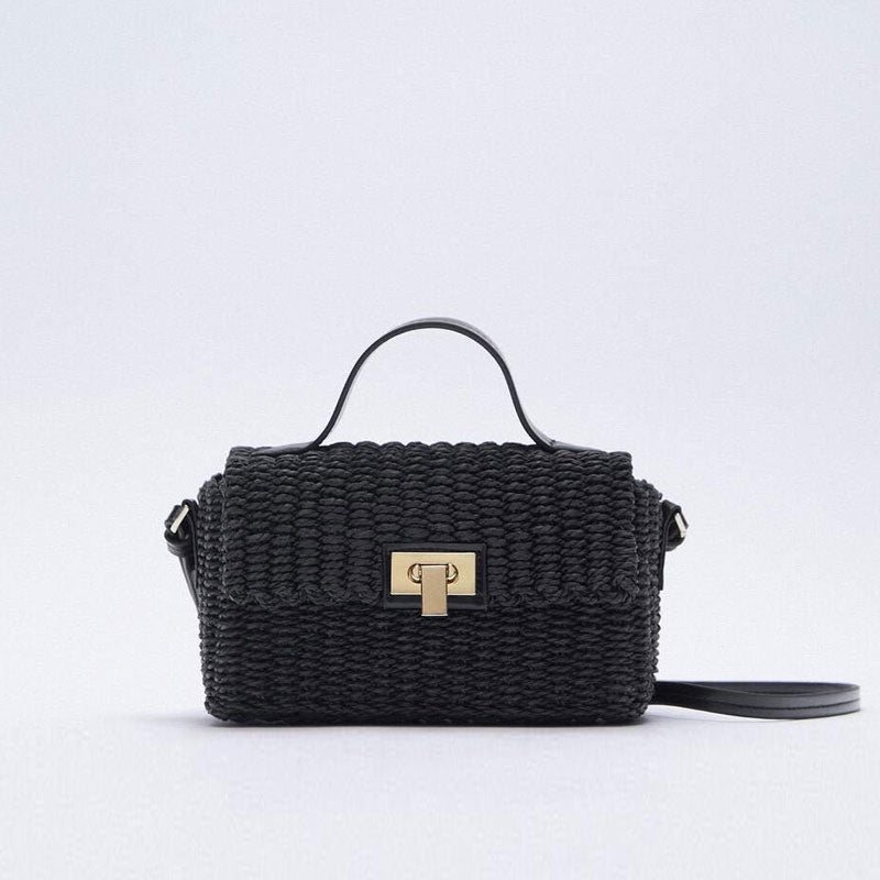 This raffia mini bag is the must-have accessory of the season! Crafted with raffia-like fabric and imitated leather. stand out in handmade weave details allover. featuring a leather top handle. a flap top accented with a metallic lock closure. a massive compartment. and an adjustable shoulder strap decorated with seamed stitching charms. Find more trendy women's woven bags or unique bags in our boutique. and style it with a floral sundress for an idyllic look.