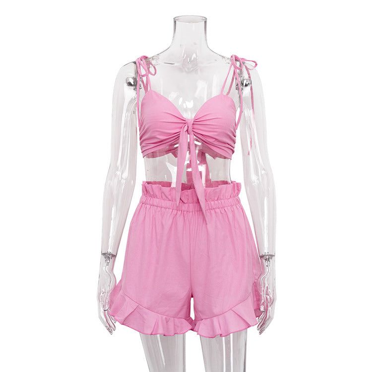 Introducing our Valentine Cotton Two-Piece Set. the epitome of cute and casual fashion. This set is perfect for those looking to add a touch of playfulness to their wardrobe. Crafted from soft and breathable cotton fabric. it ensures all-day comfort and a lightweight feel. The Valentine Two-Piece Set features a charming crop top with a sweetheart neckline and adjustable shoulder straps for a customizable fit. The matching high-waisted shorts complete the look with their flattering silhouette and adorable bow detailing. Whether you're heading to a picnic. running errands. or simply lounging at home. this set will keep you looking effortlessly stylish. Embrace the fun and flirty vibes of the Valentine Cotton Two-Piece Set and let your fashion sense shine. It's time to embrace your inner romantic and express yourself in the sweetest way possible.