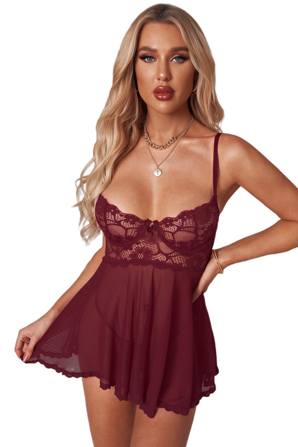 Whether you're looking for something to wear for a special occasion or just to spice up your wardrobe. Valentines Lace Bra Tulle Splicing Babydoll is the perfect choice.