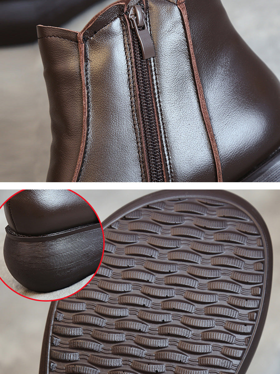 Step back in time with these Women Vintage Genuine Leather Spliced Flat Boots. The unique leather design adds a touch of nostalgia to any outfit. while the flat sole provides all-day comfort. Elevate your style and stand out from the crowd with these one-of-a-kind boots. (Vintage vibe included!)
