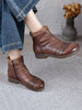 Elevate your style with our Women Vintage Leather Spliced Low Heel Ankle Boots. Crafted from premium leather. these boots add a touch of sophistication to any outfit. With a low heel and vintage spliced design. they provide both comfort and timeless elegance. Perfect for any occasion. these boots are a must-have for any fashion-forward woman.