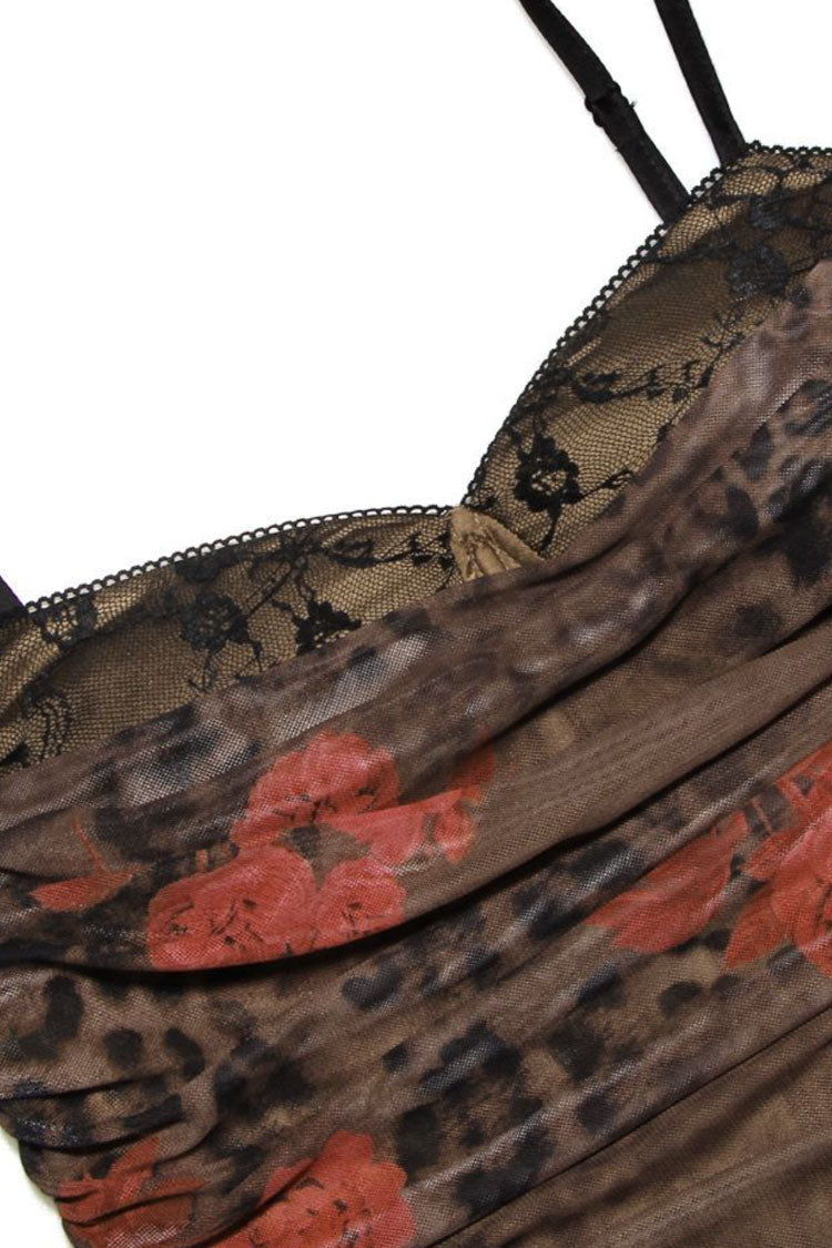 Feminine and effortless chic floral printed dresses are perfect for summer or warm-weather parties. Made of stretchy mesh fabric. this vintage style floral printed maxi dress strikes a nice balance between elegant and for women in spring and summer. Designed with a darling scalloped trimmed sweetheart neckline with padded cups. adjustable spaghetti straps on the shoulders. a bodycon silhouette patterned with blooming floral motif print and wild style leopard print. a hidden zip closure at back. and a long dress cut with a back slit for easy movement. this comfortable mesh maxi dress in our boutique is feminine and will photograph beautifully. We can't help but picture this stunning outfit at your next cocktail party.