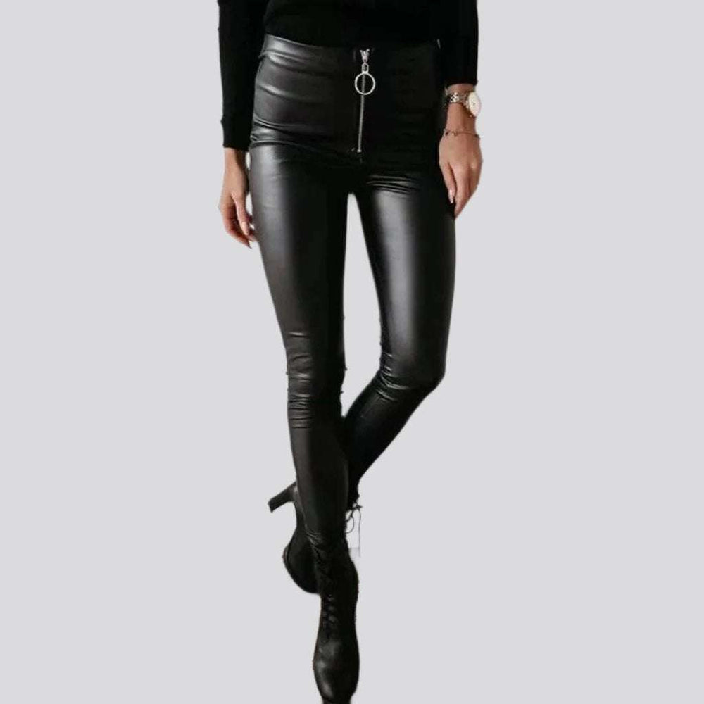 Make a statement with these Coated Clubwear Women's Jeans from the 2023 Autumn-Winter Collection! This Year-2000-style. wax. skinny. high waist denim pants with a zipper closure is patterned to suit your trendsetting taste and elevate your vibe game. Crafted with premium quality denim. imbued with intricate pattern embellishments. and finished with a bootcut form for an effortless blend of classic charm and contemporary flair. these jeans are the perfect embodiment of luxury and class.