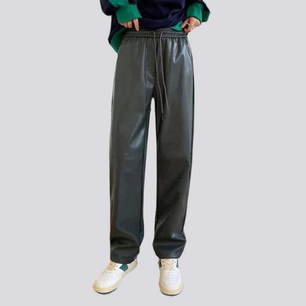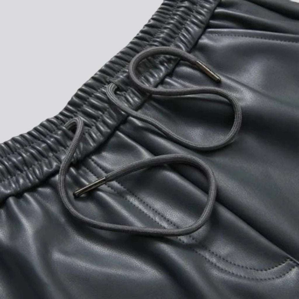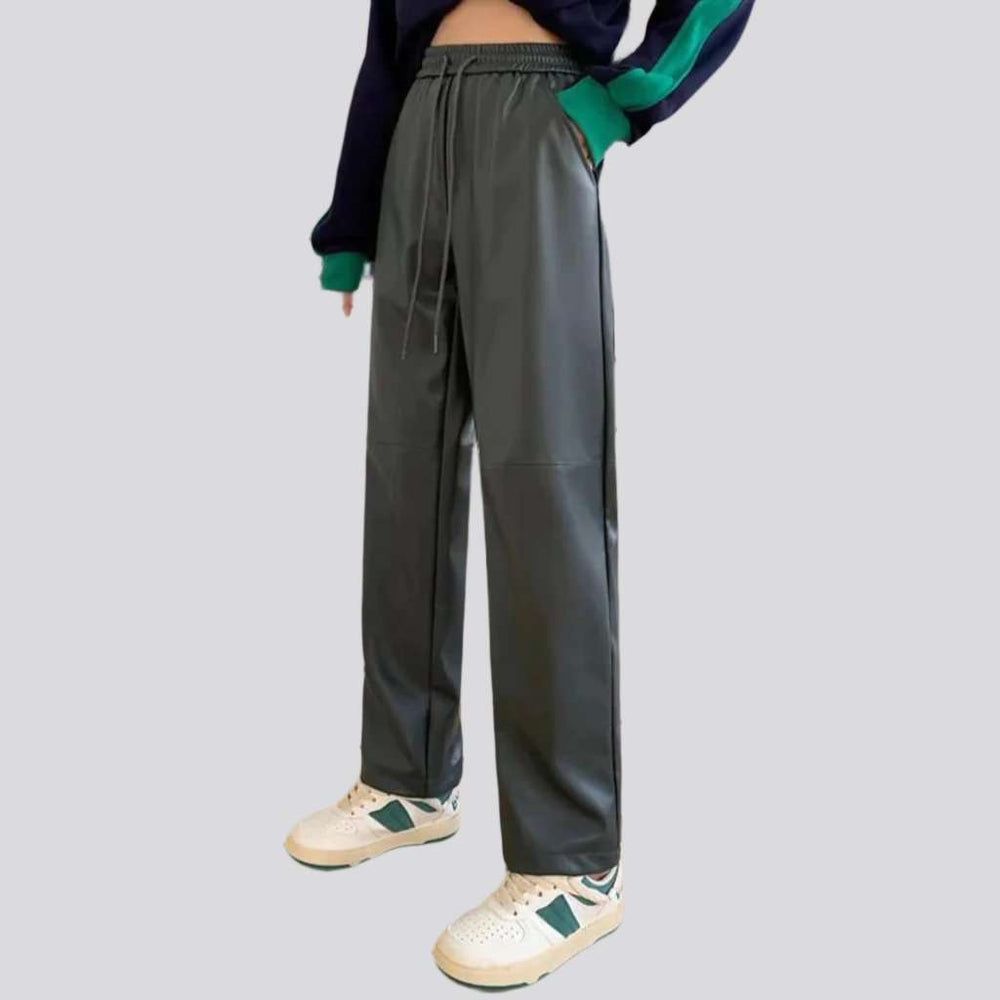 Defy vogue conventions with our 2023 Spring-Summer Collection Y2K-style pu-coated denim ladies' pants! Featuring a elevated-waisted. loose fit. drawstring closure and a unique wax finish. these pants are sure to make a statement and turn heads wherever you go.