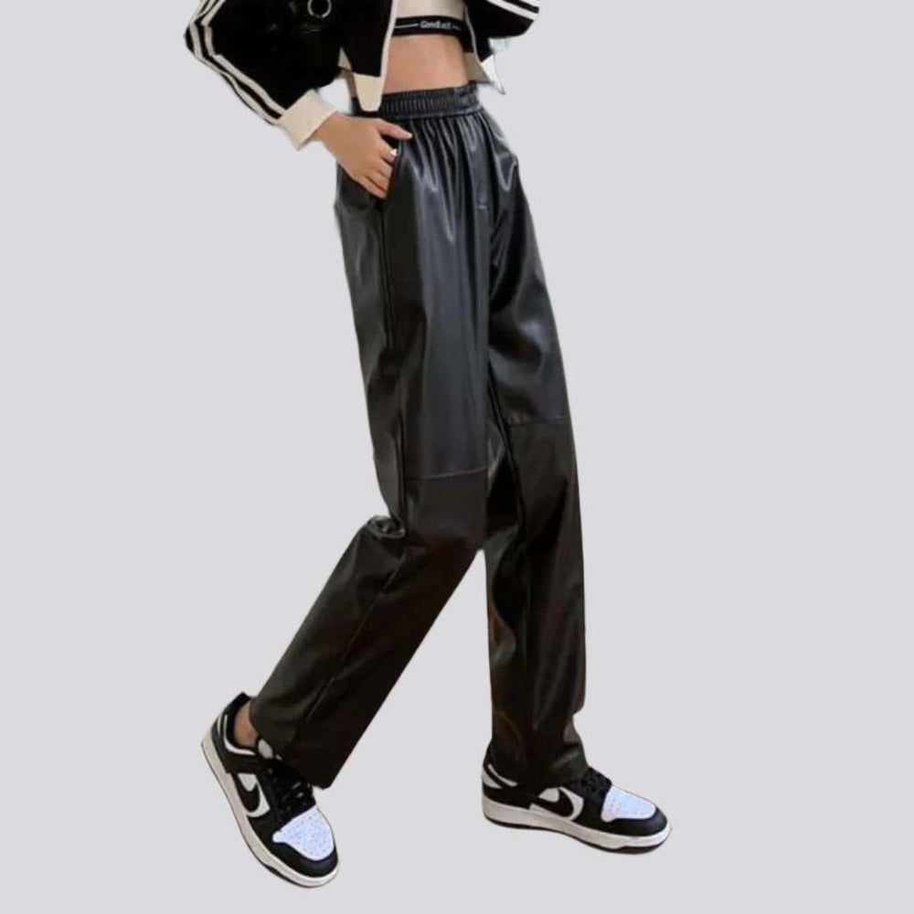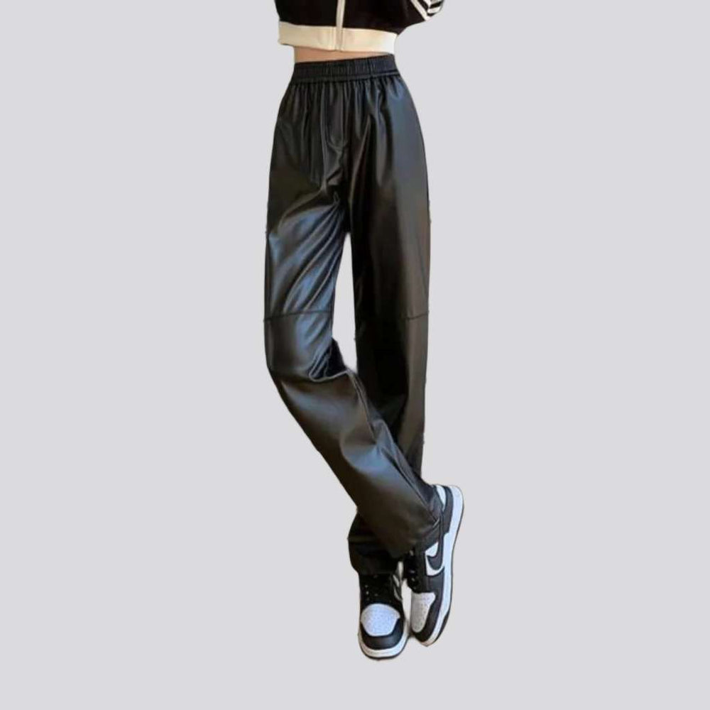 Whether you're headed for a day at the beach or a night out on the town. these pants are the perfect addition to your wardrobe. With a timeless. vintage fit and fashion pu-leather finish. they'll have you stepping into the new decade in style.