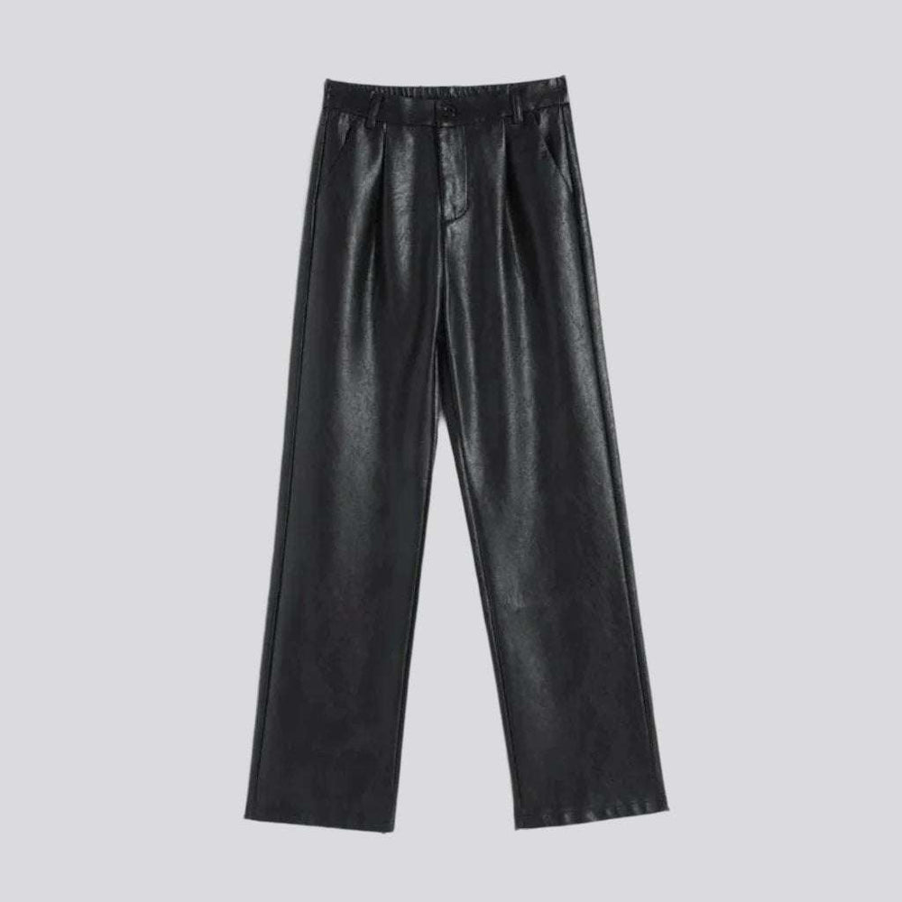 For the trendsetters. for the connoisseurs of luxury elevate your trend game with this unmatched pair of Y2K-inspired pu-leather wide-leg high-rise denim jeans from the 2023 Autumn-Winter Collection today!