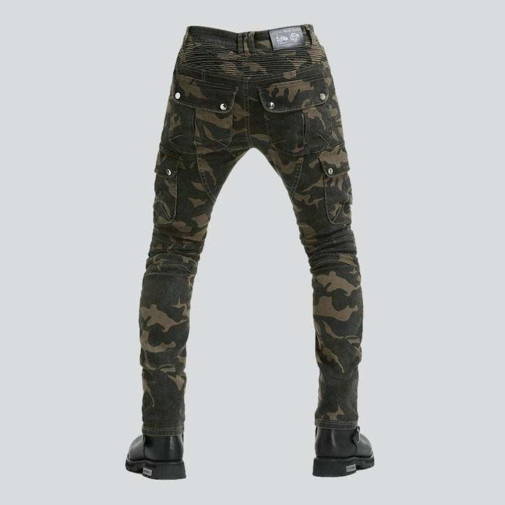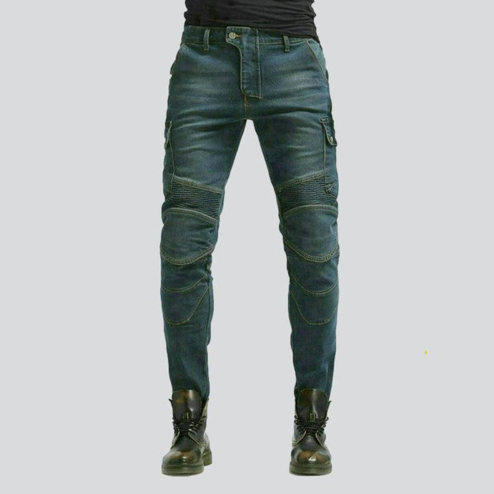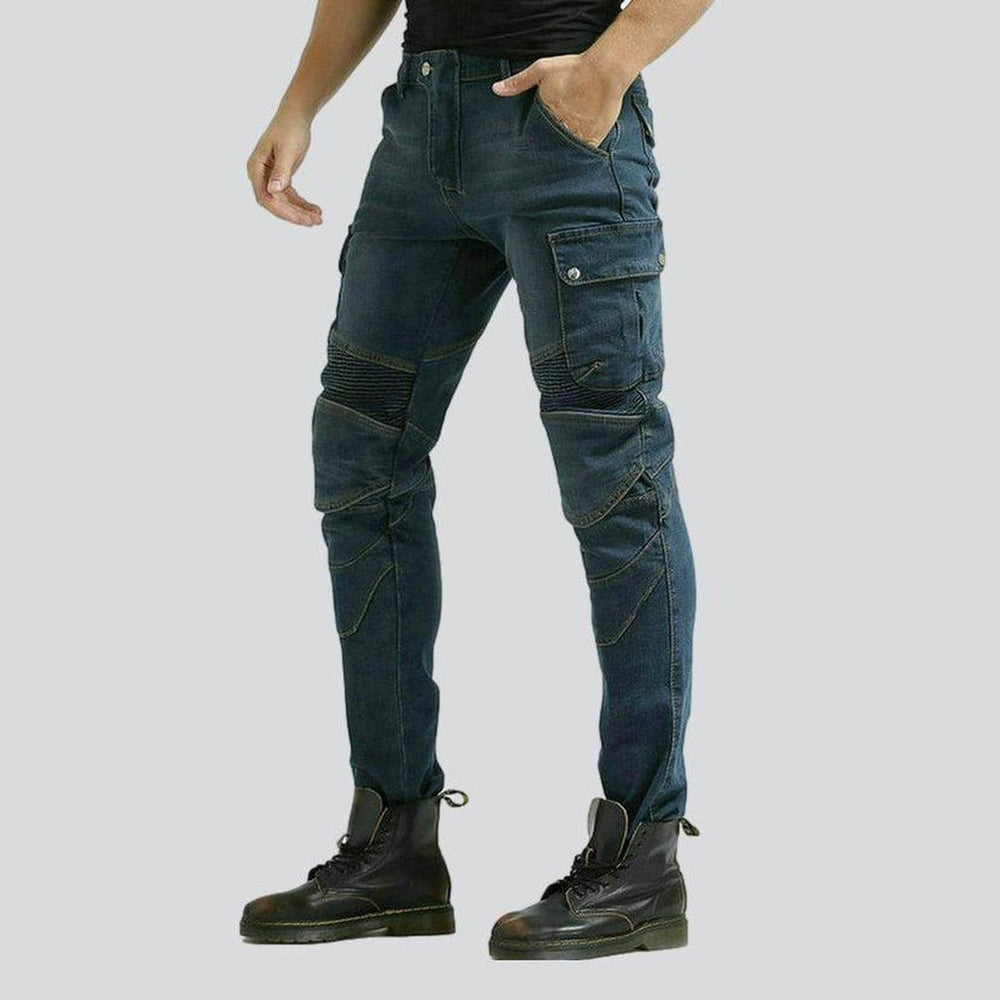 Put a stylish spin on your moto look with our 2023 Autumn Collection Wear Resistant Biker Denim Pants. These mid-waist. slender-cut biker vibe jeans are the perfect blend of trend and sturdiness. featuring stonewashed fabric. a zipper and button closure. and kevlar reinforcements for superior durability.