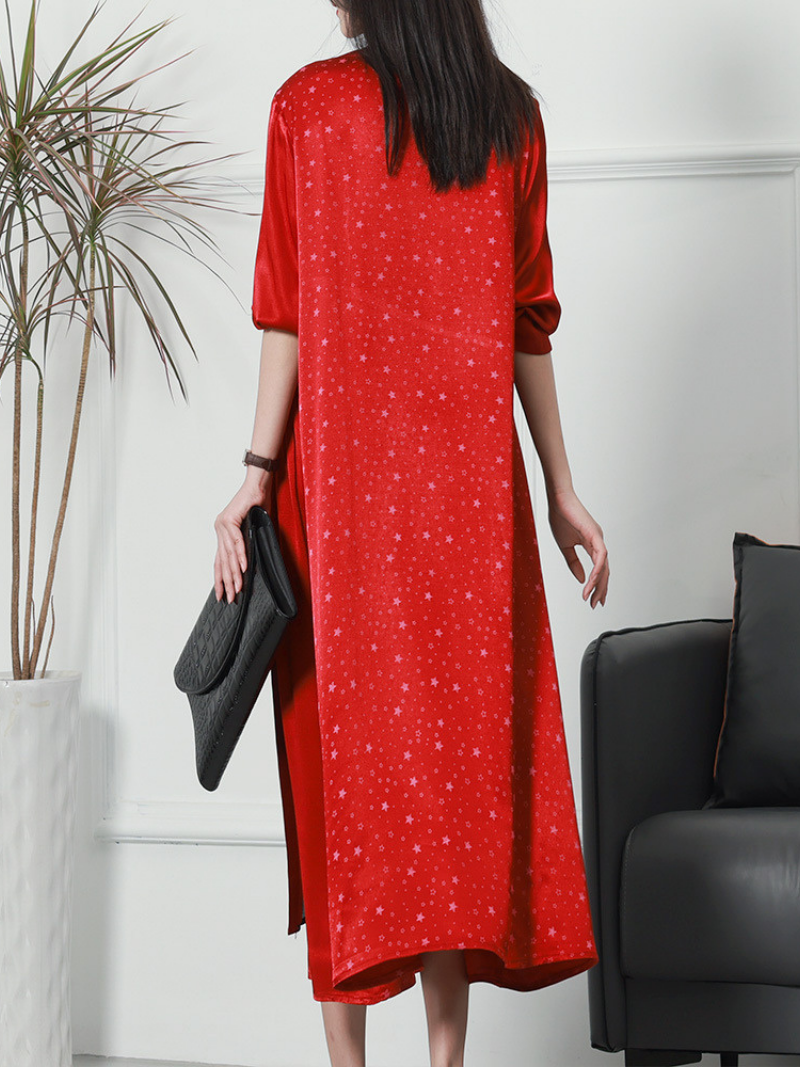 The Women's Fashionable V-neck Neck Middle Waist Star Pattern Midi-Dress is a stylish and trendy piece that is perfect for any fashion-forward woman. Made from a high-quality blend of polyester and silk. this dress has a luxurious and soft texture that feels great against the skin. The V-neckline adds a touch of elegance and sophistication to the dress. while the middle waist cinchers in to create a flattering silhouette. The star pattern on the dress adds a playful and fun element. making it a great choice for casual occasions. Available in red. green. and black. this Women's Fashionable V-neck Neck Middle Waist Star Pattern Midi-Dress is a versatile and fashionable choice that can be dressed up or down for any occasion.