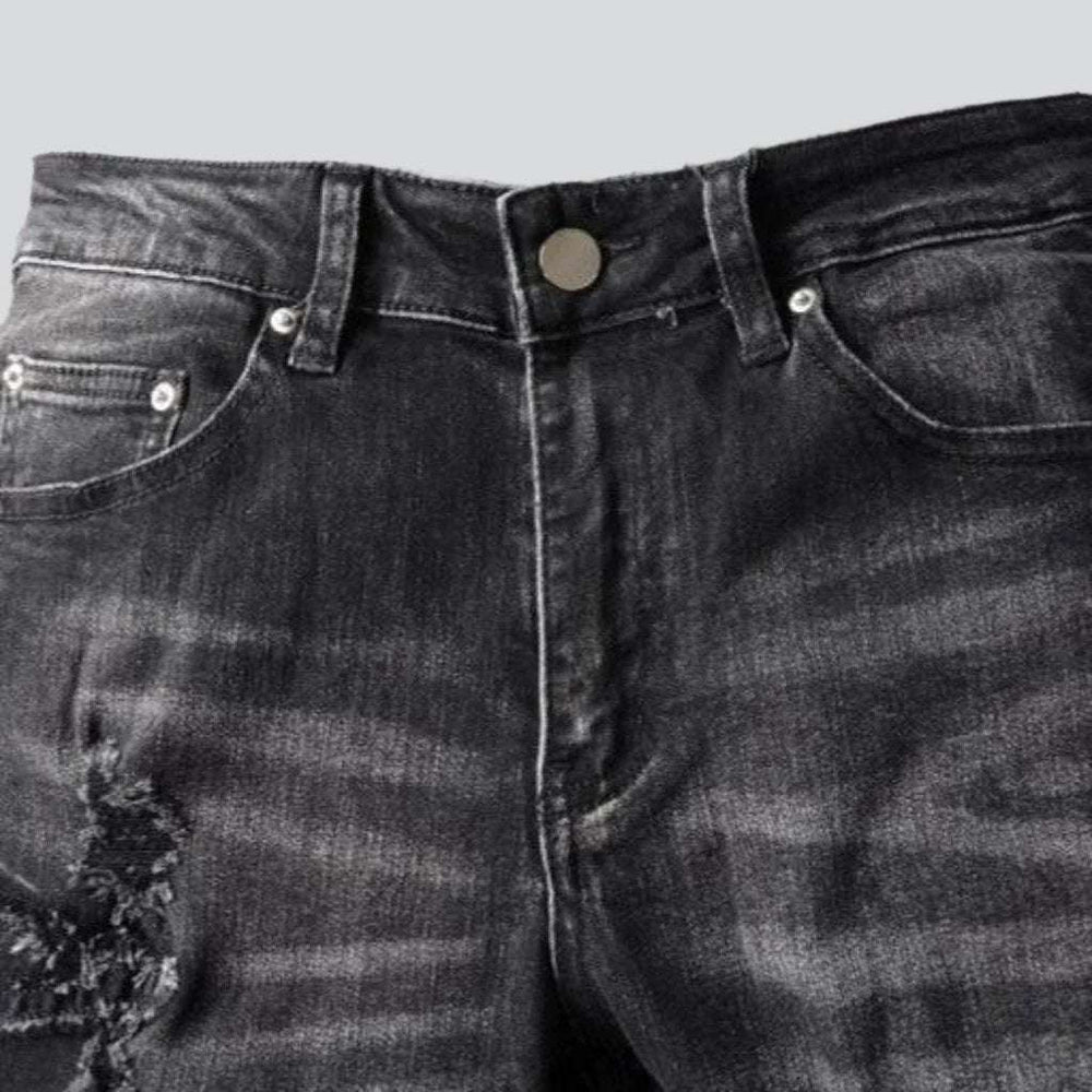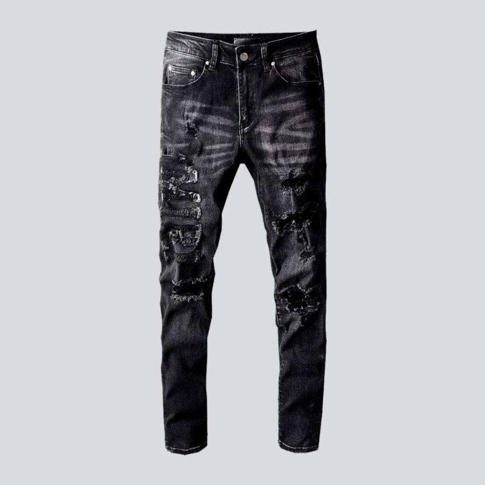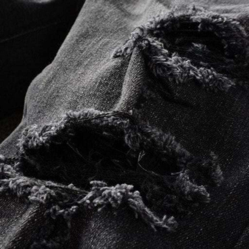Make a statement with our 2023 Spring-Summer Men's Collection �Whiskered Distressed Black Jeans! Sleek. stylish. and utterly chic. these jeans combine contemporary vogue with vintage punkish for an effortlessly cool look.