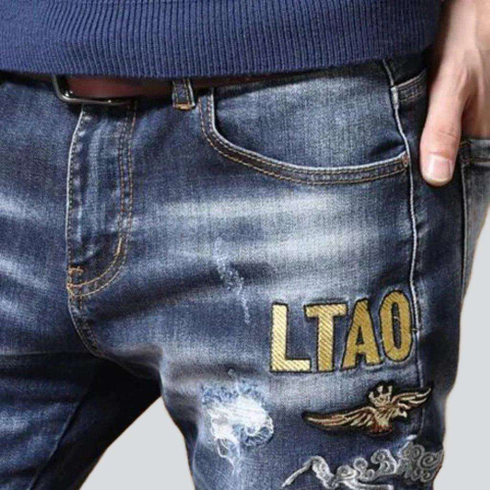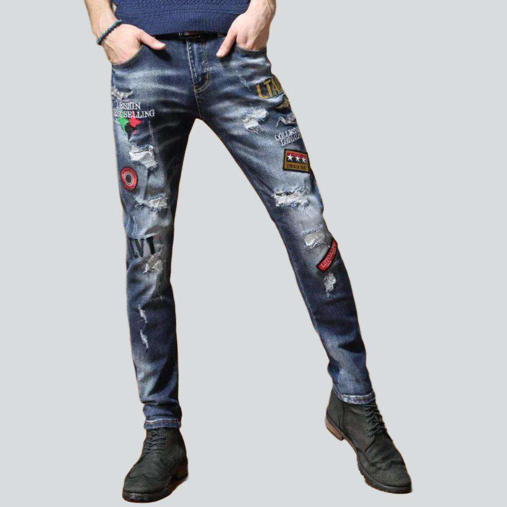Master the street flair game with our 2023 Spring-Summer Collection Whiskered Embroidery Men's Jeans! Combining contemporary fashion with a nostalgic grunge vibe. these jeans are patterned to make a statement. Crafted with premium quality denim. featuring a sleek slim fit. mid-waist. zipper & button duo closure. and a distinctive distressed pattern. they are the perfect blend of comfort. functionality. and mode.