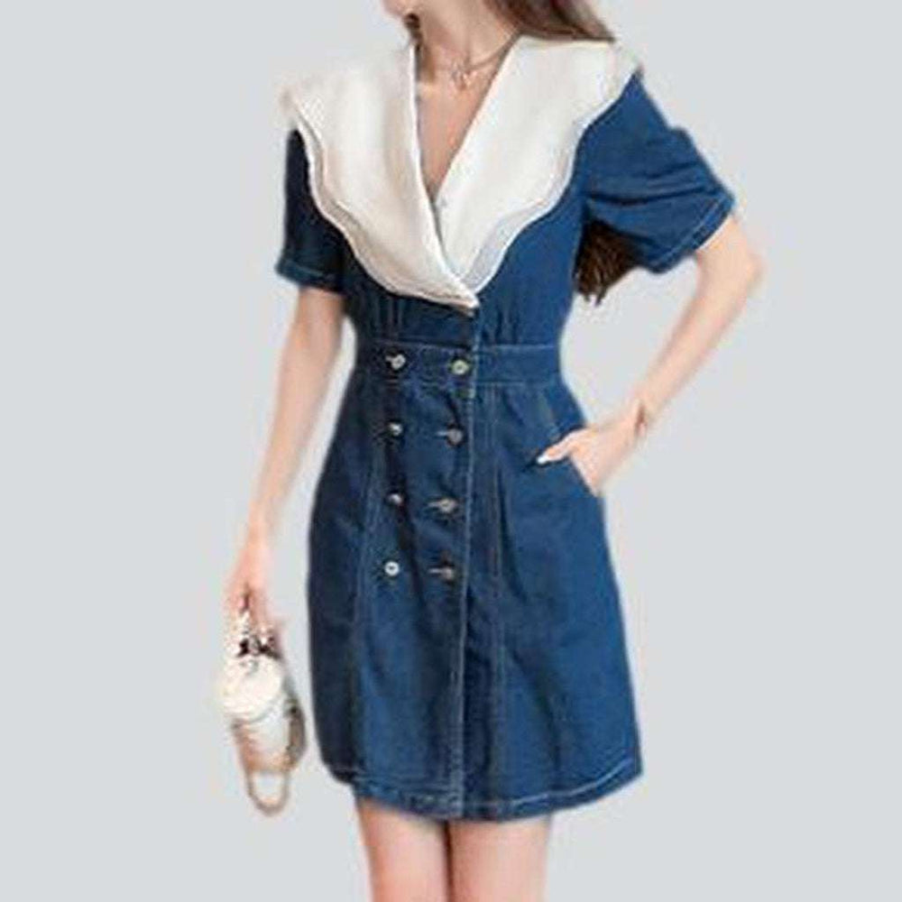 Elevate your style with a classic piece that promises to be a conversation starter. This White Collar Short Denim Dress is perfect for the trendy-forward trendsetters in search of a modern conventional. Don't miss out on this iconic piece add it to your wardrobe today!