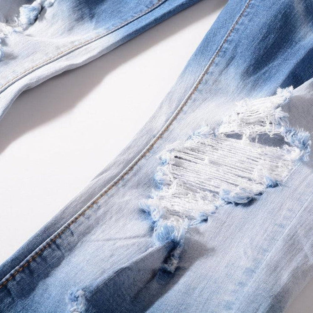 Introducing our 2023 Spring-Summer Collection white tone painted ripped jeans! Perfect for street style. these slim-fit jeans are a statement of fashion and rebellion. With a mid-waist design. zipper & button closure. and stretchy fabric. these jeans offer comfort and durability without compromising on mode.Distinctive Features: