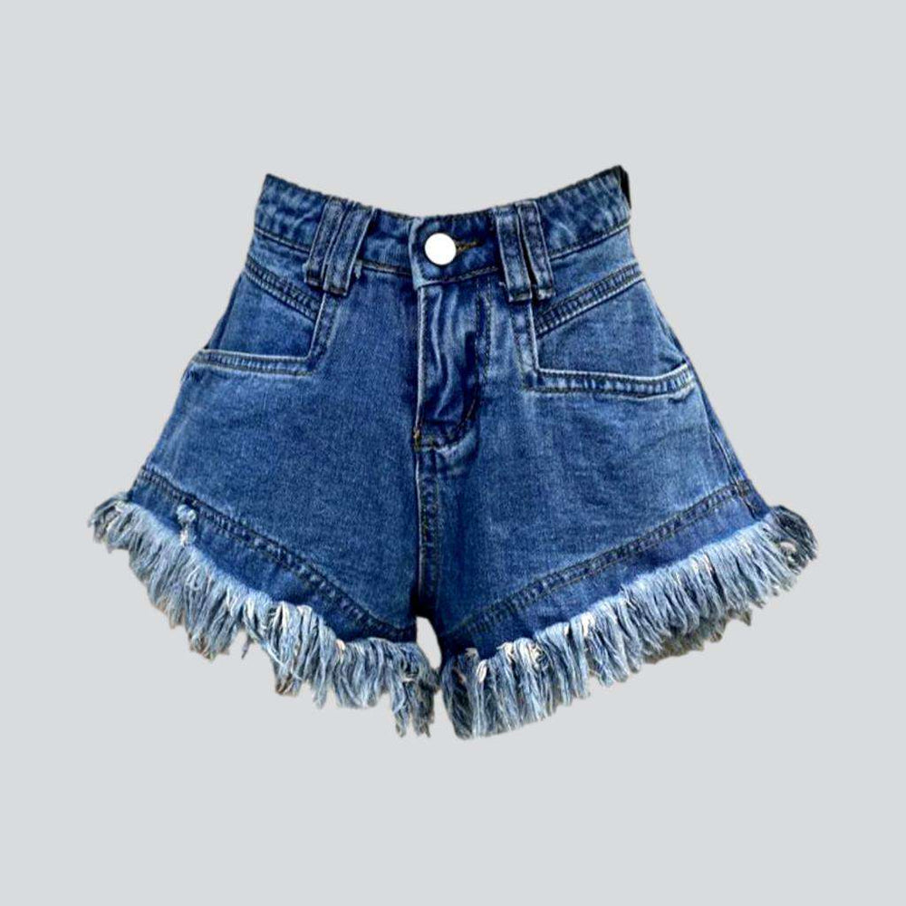 Unlock the traditional beauty of denim with these shorts. crafted for a couture-day flair statement. Their wide-hem design and high waist flatter your figure while the distressed finish gives off an effortless. casual style. Experience modern from a new perspective—embrace these shorts and get ready to look and feel like a million bucks!