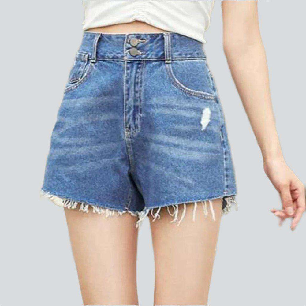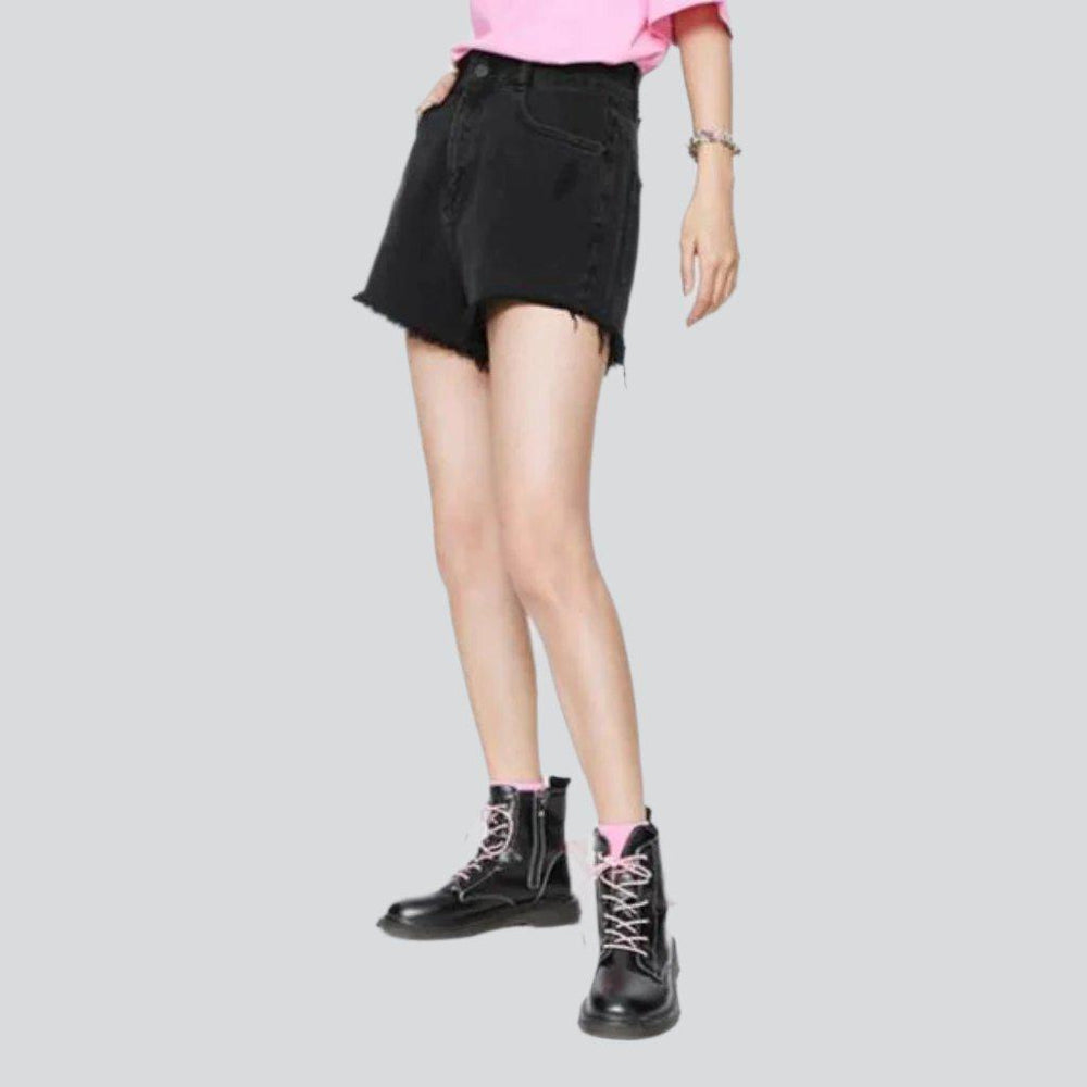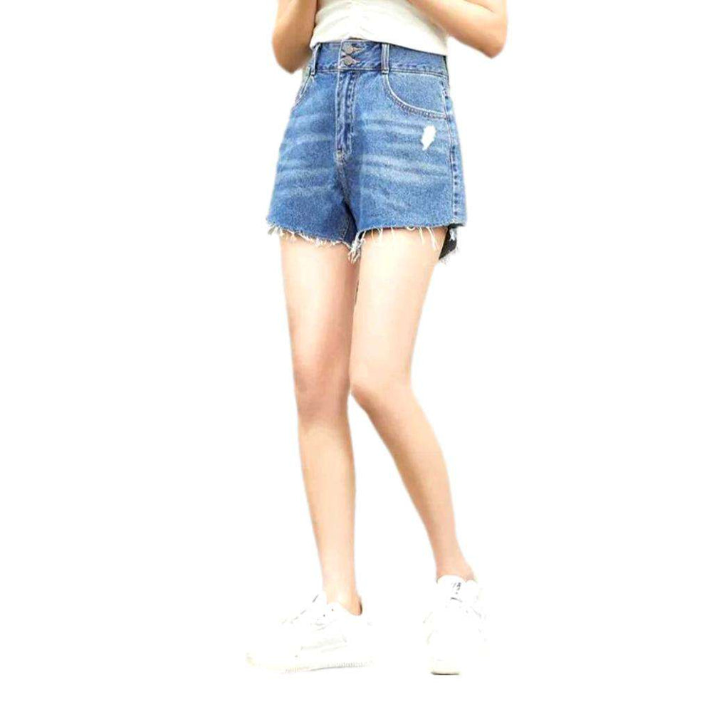 Make your summer style stand out with our 2023 Summer Collection's wide-leg cropped denim shorts! Featuring a high-waist design that flatters your figure. street-style ripped details. and a secure zipper and button closure. these shorts are the perfect combination of vintage allure and modern chic.