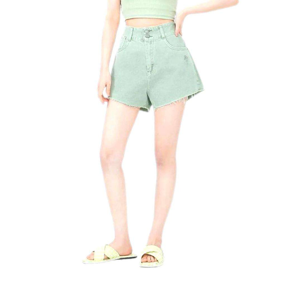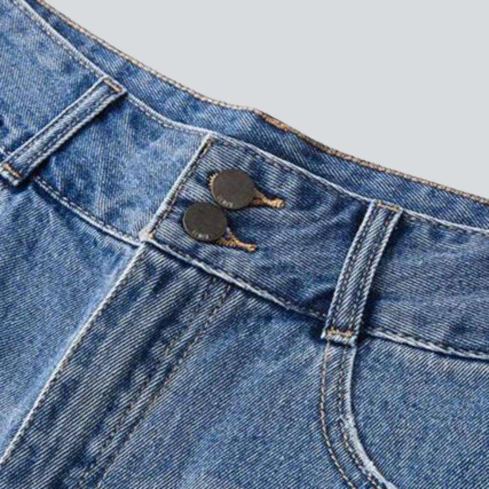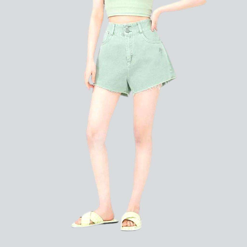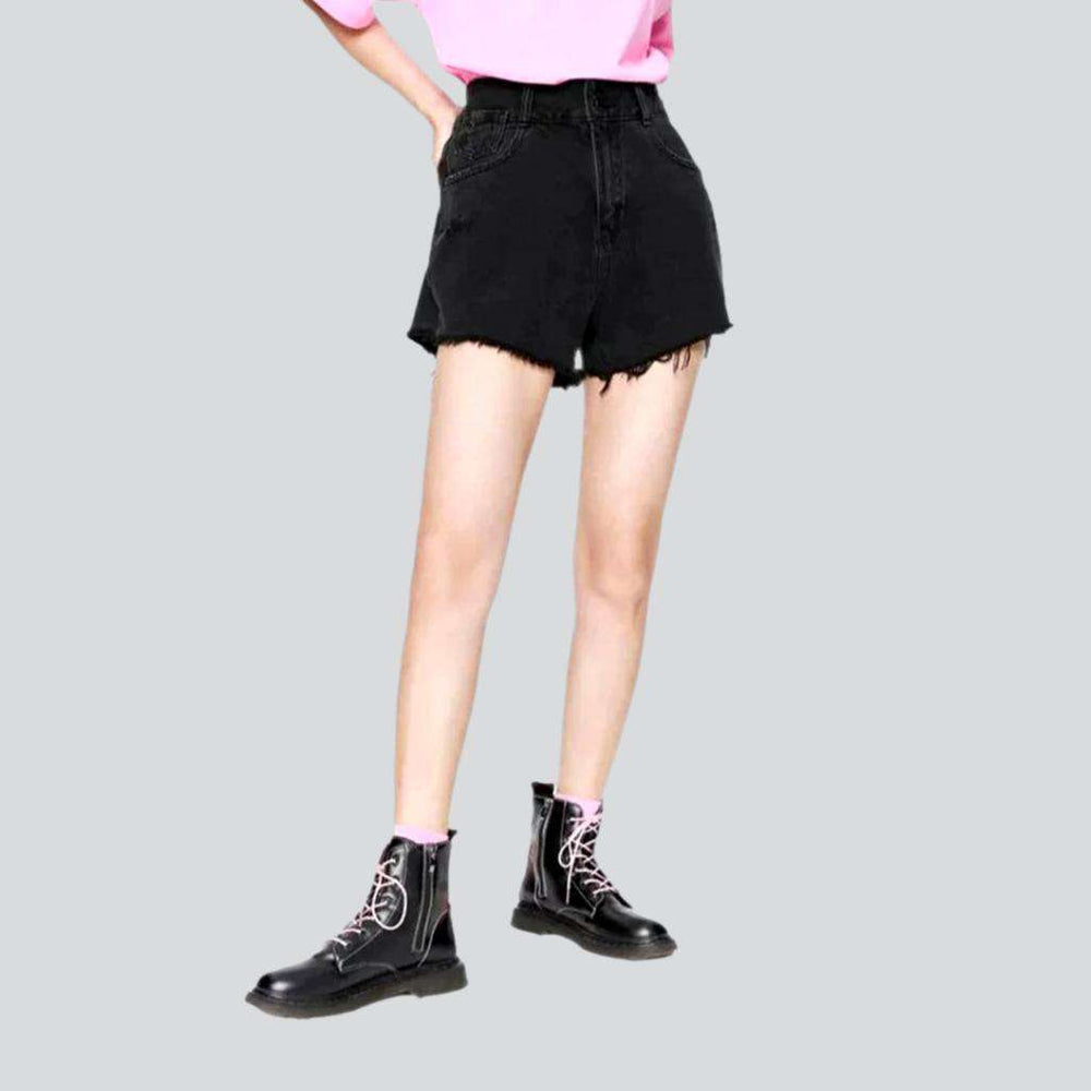Make your summer style stand out with our 2023 Summer Collection's wide-leg cropped denim shorts! Featuring a high-waist design that flatters your figure. street-style ripped details. and a secure zipper and button closure. these shorts are the perfect combination of vintage allure and modern chic.