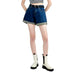 Introducing the 2023 Summer Collection's laid-back-style denim shorts! A modern wardrobe essential. these high-waisted. wide-leg. mid-wash shorts are crafted from premium quality denim and feature a zipper and button closure for perfect fit. Exuding opulence and sophistication. these shorts are perfect for any occasion.