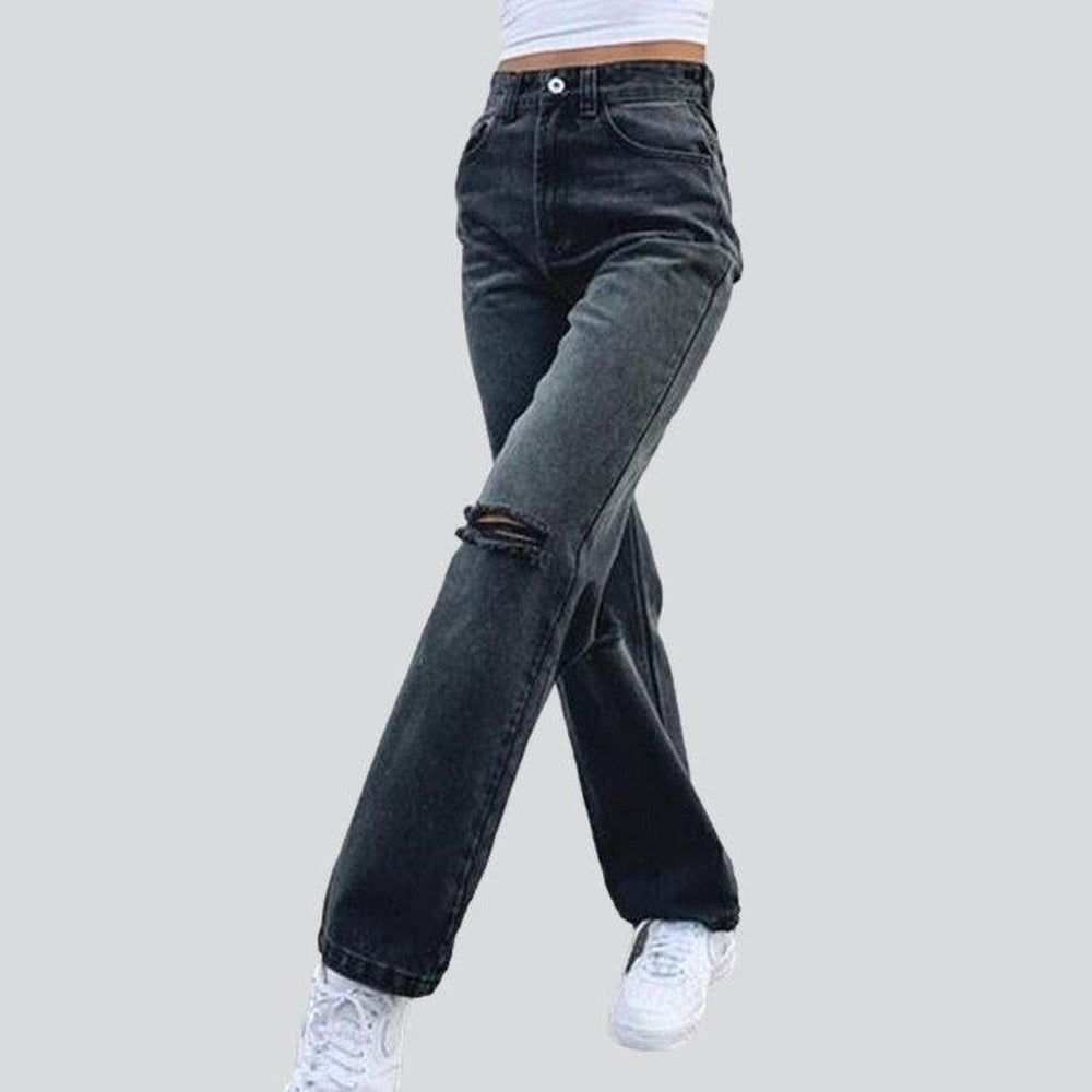 Set the streets ablaze with 2023 Autumn Collection's wide leg ripped knees jeans. Designed to bring you comfort and style. these high-waist jeans feature a zipper and button closure for the perfect form. Whether you're out to make a statement or just looking for a night out. these city vibe jeans are your go-to.