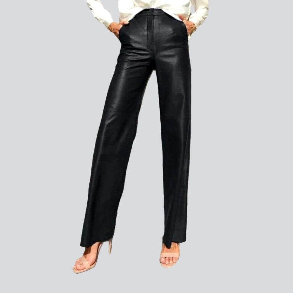 Make a statement this season with our 2023 Autumn-Winter Collection Wide-leg-Leg Pu-leather Jean Pants for Ladies. Y2K Style! Brimming with vintage charm and today's spirited fashion pulse. these pants are the perfect balance between yesteryear's elegance and modern-day sophistication. Featuring a high waist. zipper & button closure. and luxe denim. these pants are crafted for unparalleled comfort and timeless grace.