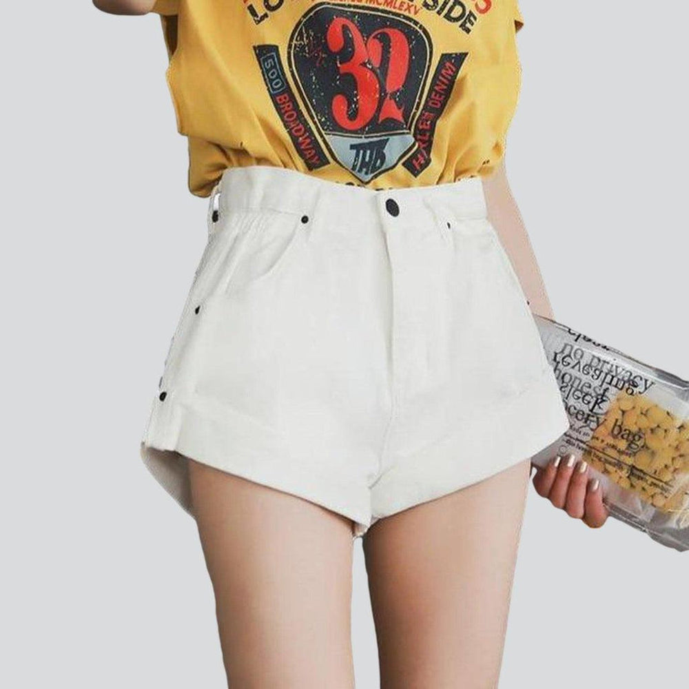 Designed for those who love fashion as an art. these timeless shorts are crafted to make a statement. Show off sun-kissed skin and radiant confidence with their high-waisted design. while the stonewashed finish and zipper and button closures add a touch of classic elegance. Experience summer like never before—pair these shorts with any ensemble for a look that will never go out of style.