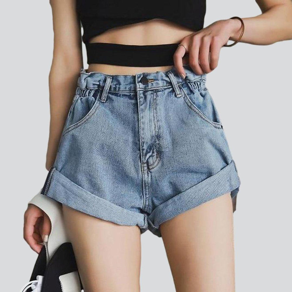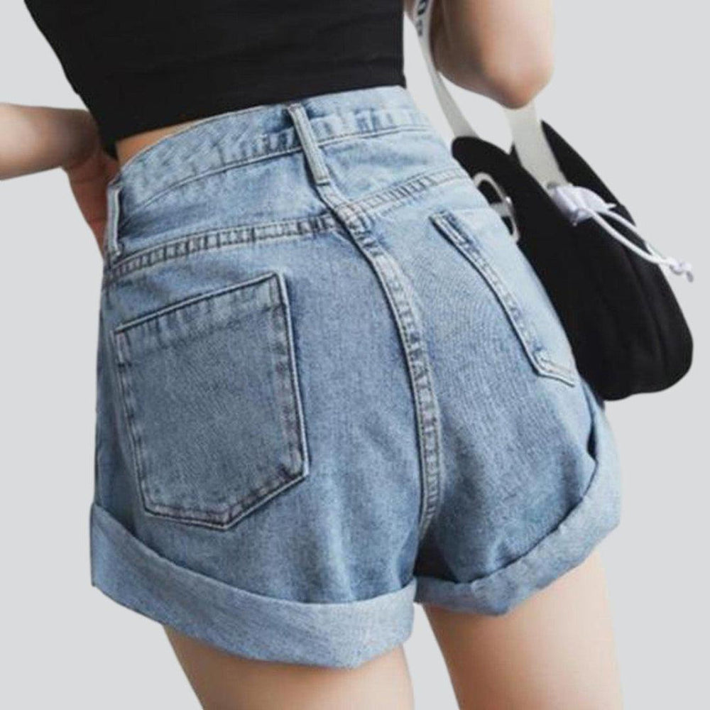 Take summer flair to the next level with our 2023 Summer Collection's laid-back-style wide-leg women's shorts! Crafted with high-waisted construction. a stonewashed finish. and zipper and button closures. these shorts are the perfect blend of vintage allure and today's fashion pulse.