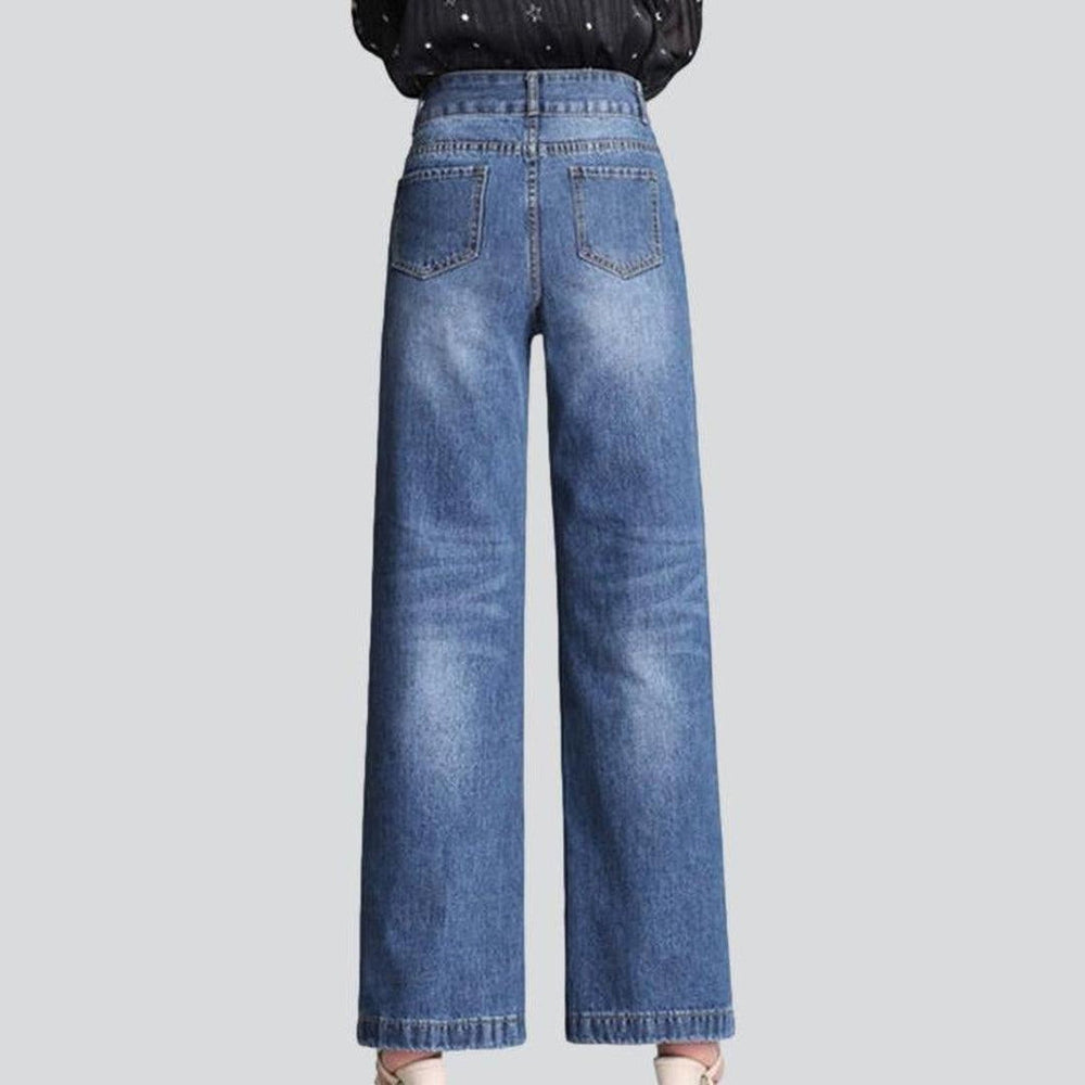 Welcome to the 2023 Autumn Collection of Street Trend Wide-leg-Leg Women's Jeans the perfect combination of trend and comfort! These high-waisted jeans feature a zipper and button closure to ensure maximum comfort and convenience. Crafted from premium quality denim. these jeans stand out from the rest with their trendy fashion statement. intricate embellishments. flare-leg fit. and classic allure.