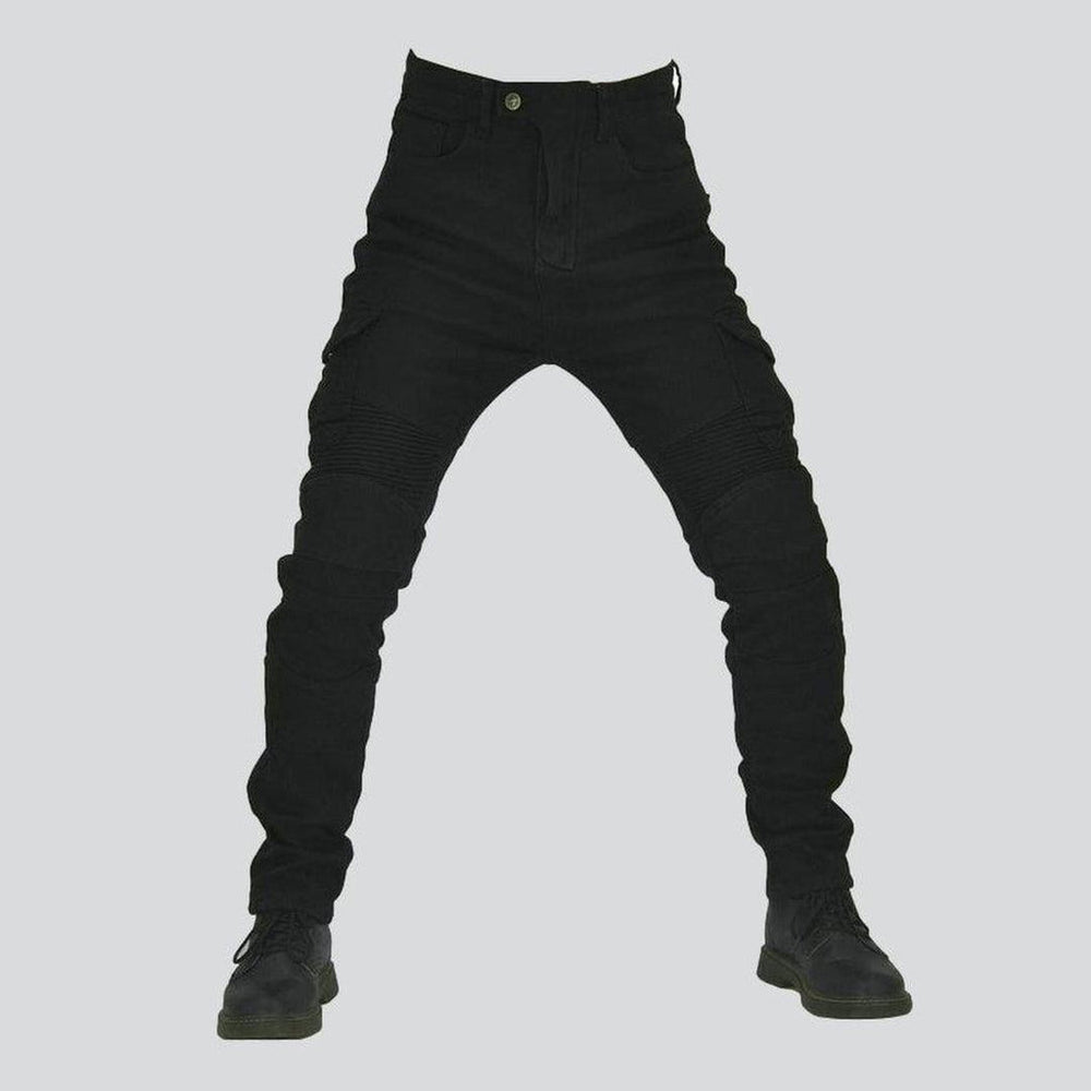 Take your winter wardrobe to the next level with the Black Men's Riding Jeans from our 2023 Winter Collection. Whether you're off to an evening gathering or a relaxed brunch. you'll feel effortlessly stylish and undeniably cool in this timeless one-colorful piece. Add to your wardrobe today and experience timeless biker style like never before!