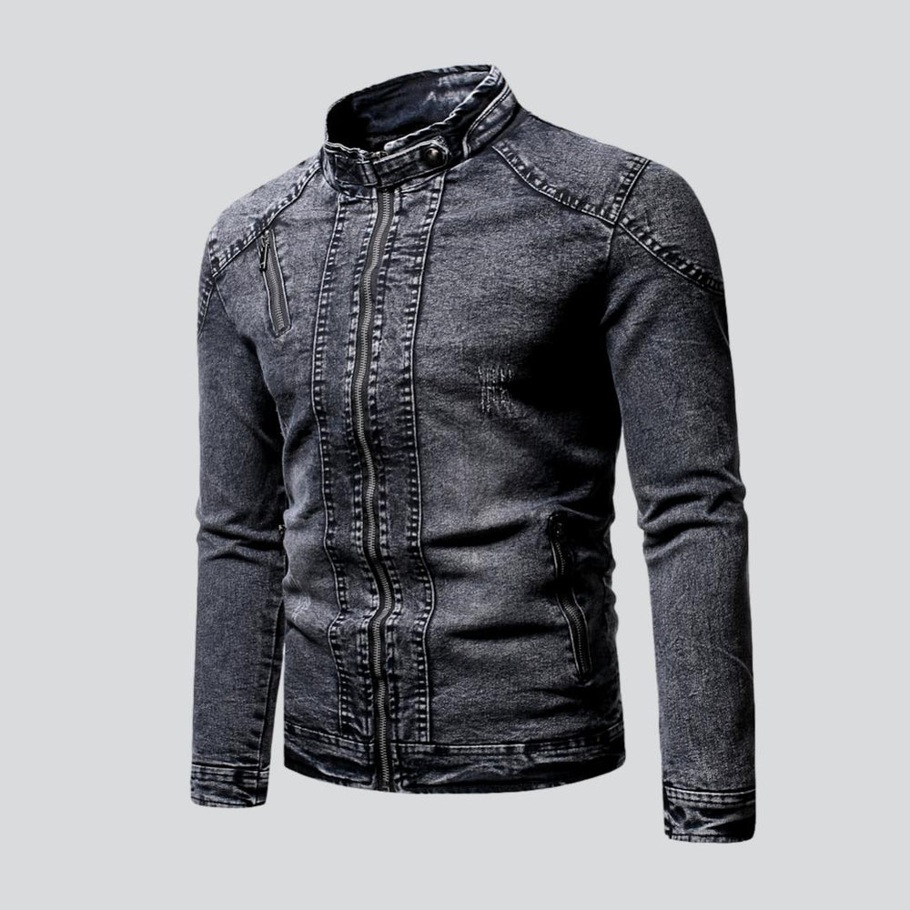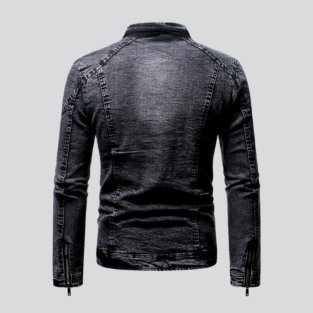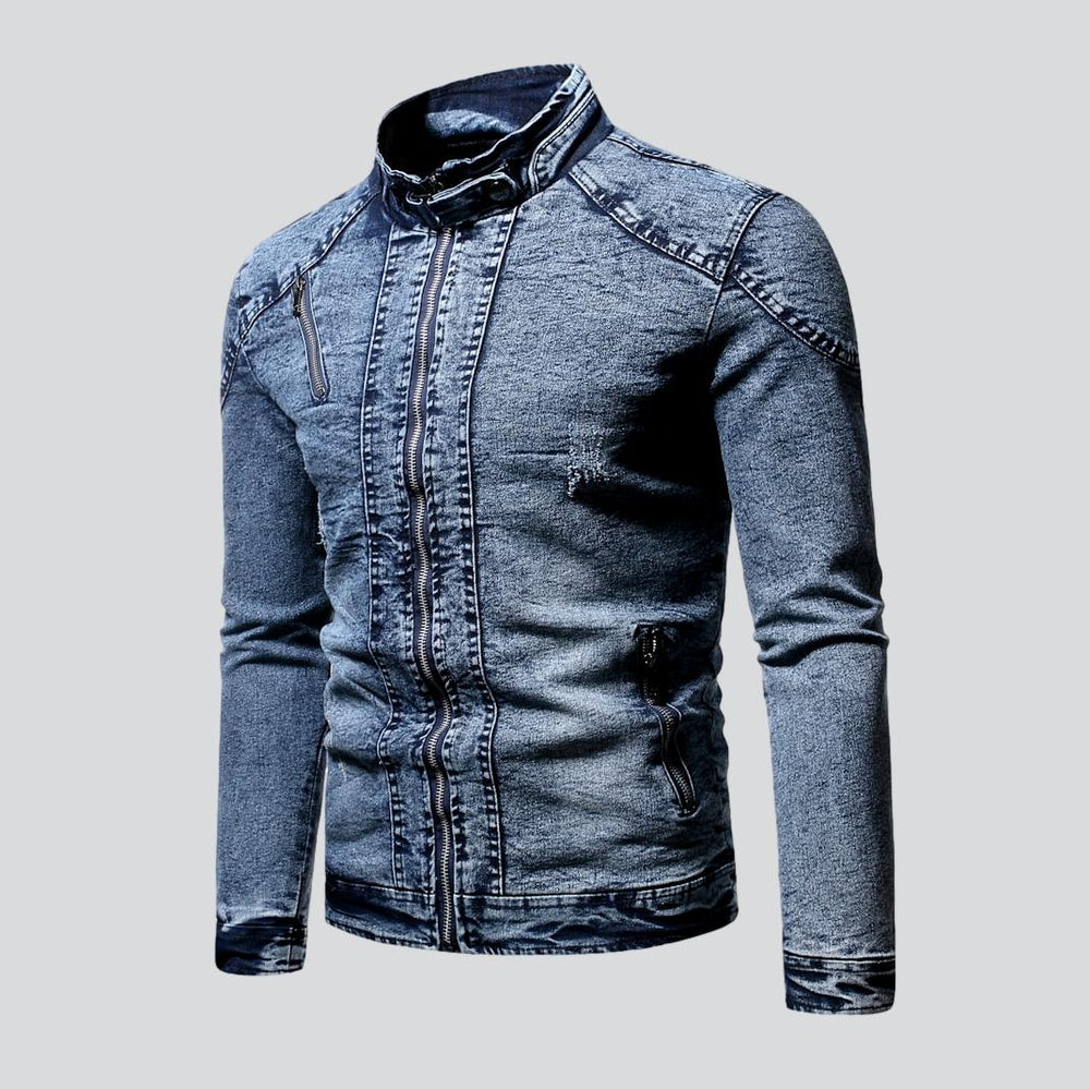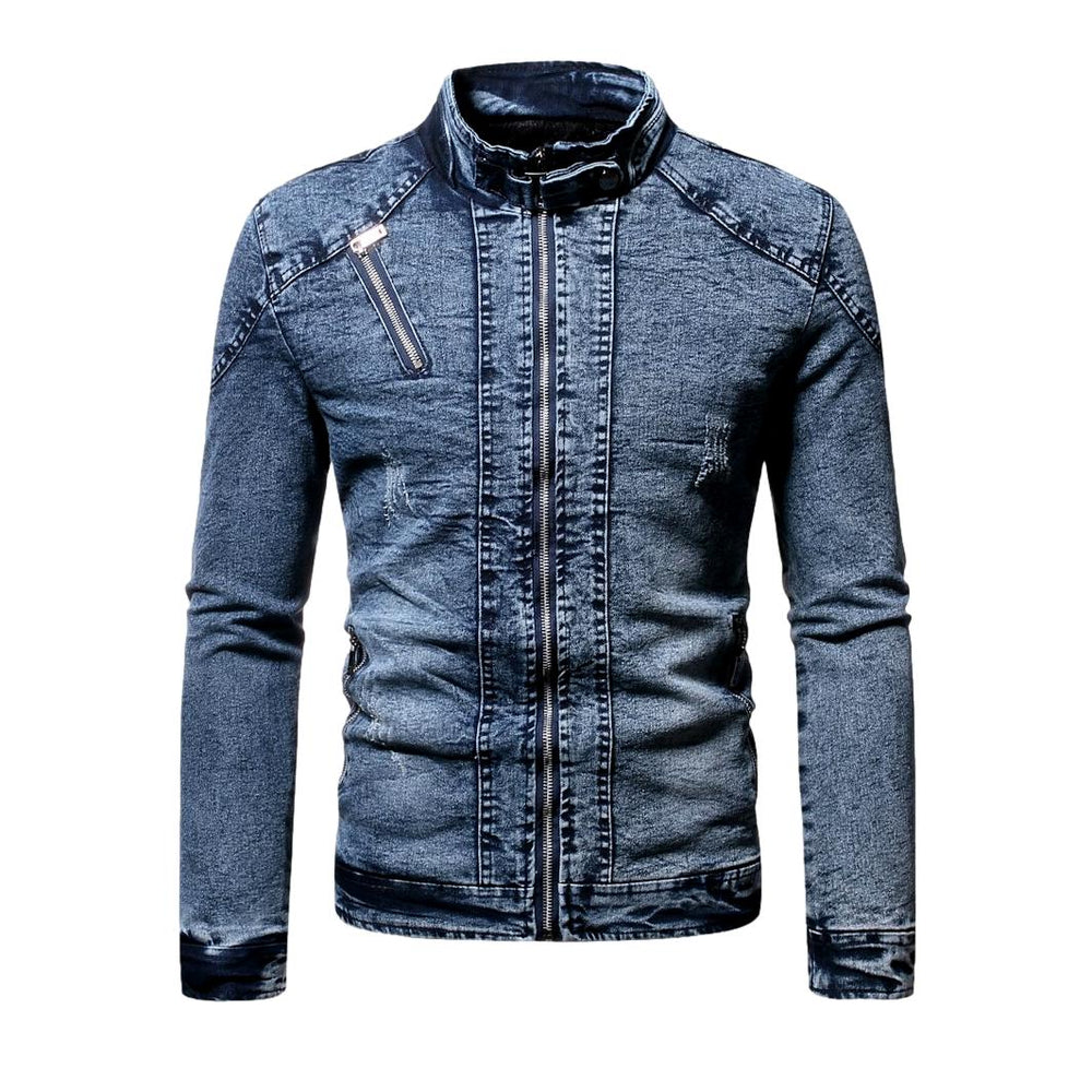 Discover the conventional appeal of riding couture with our 2023 Autumn-Winter Collection Men's Moto Denim Jacket! With vintage-inspired details. a slim silhouette. and a zipper closure. this jacket is designed for the fashion-forward man. Crafted from luxe denim. this jacket is sure to become your go-to for effortless vibe.