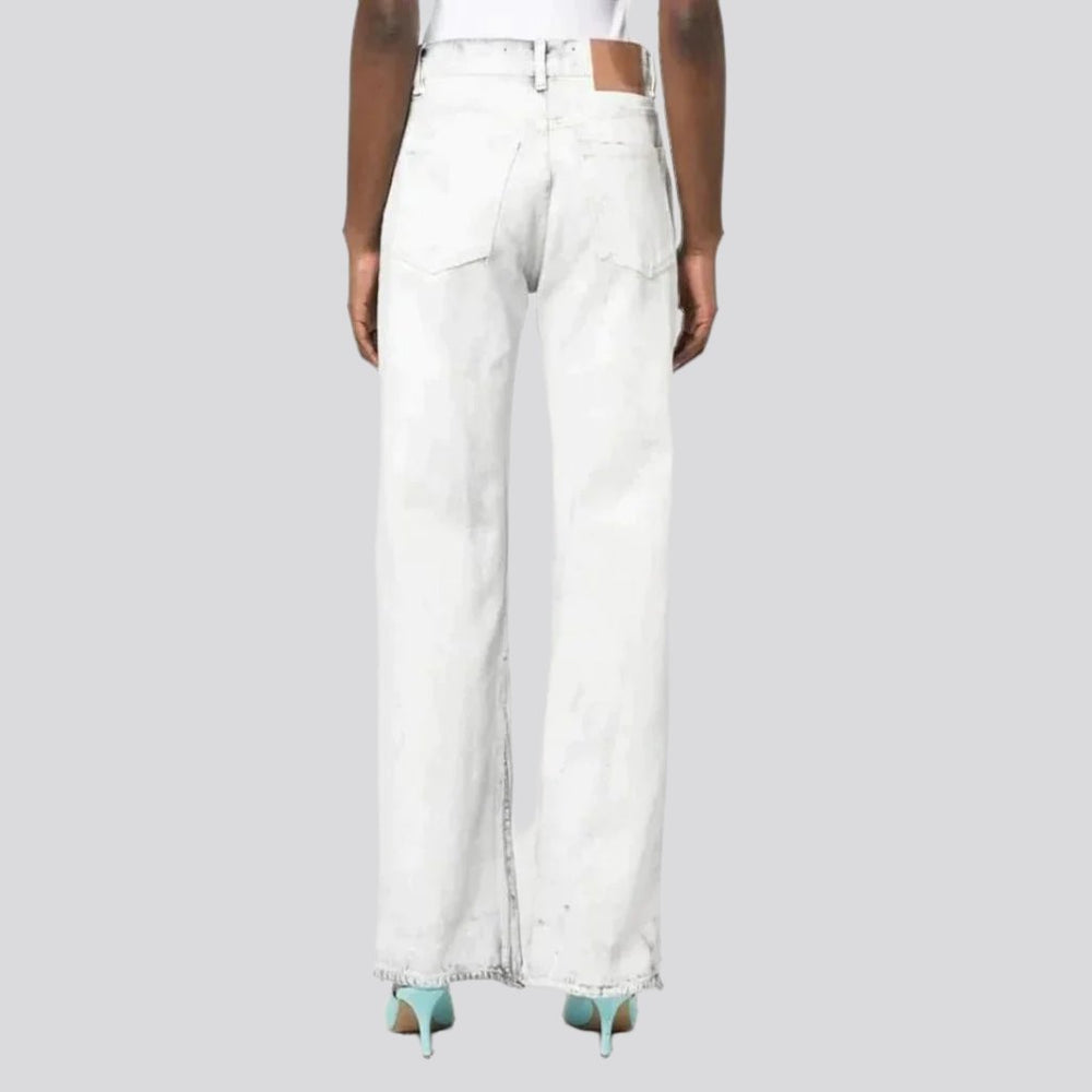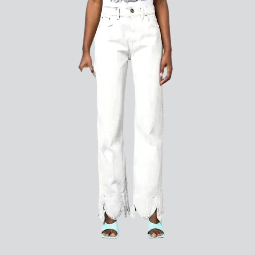 Vogue isn't just about style—it's about making a statement. These one-color jeans are the perfect way to showcase your individual vibe. The straight-fit design is traditional and versatile. while the raw hem and zipper closure make for an ultra-couture edge. With the luxe denim fabric for a casual fit. these jeans are sure to be your go-to summer look.