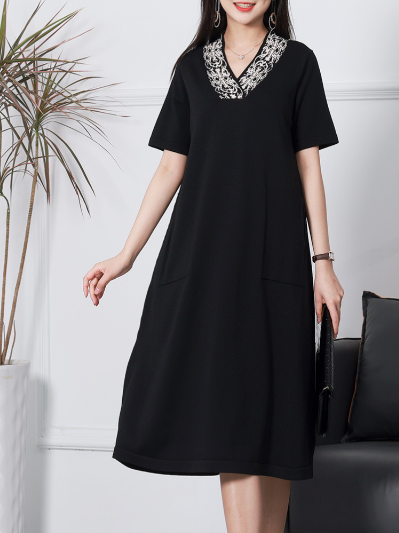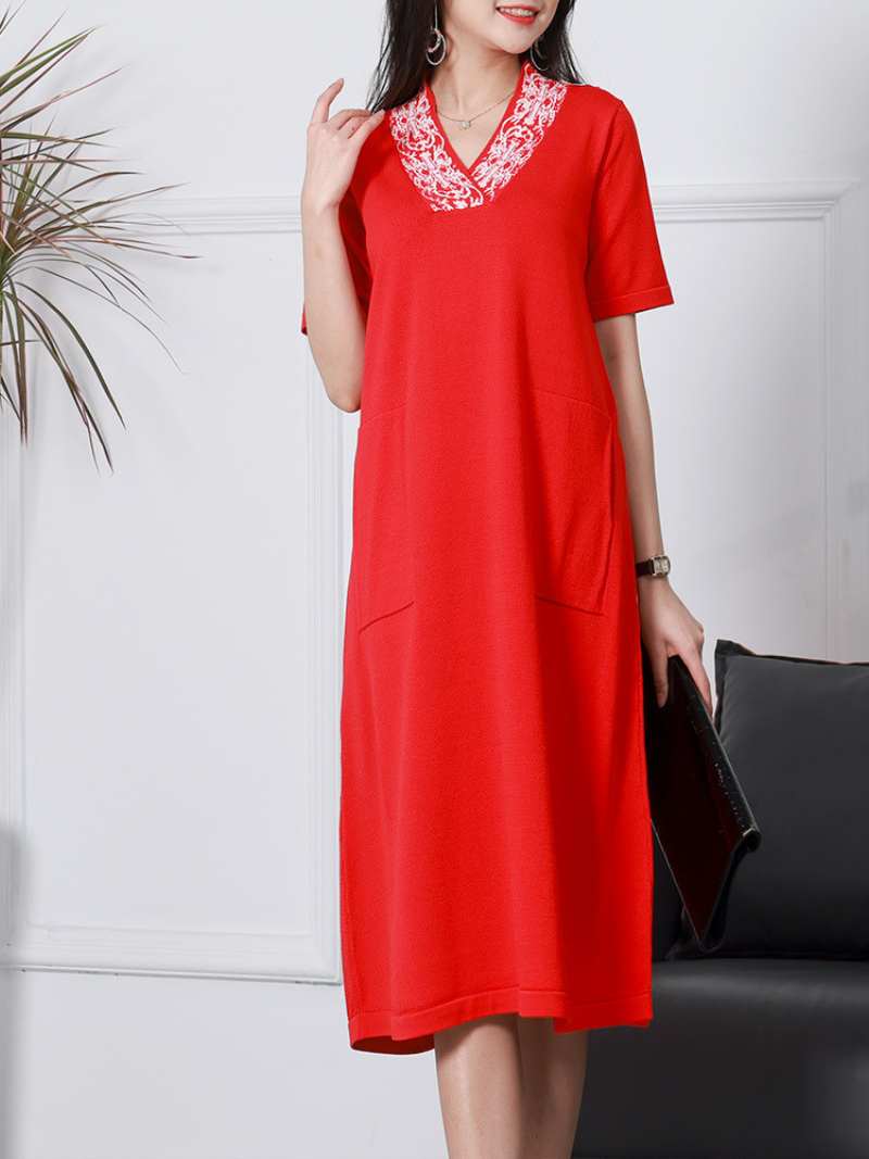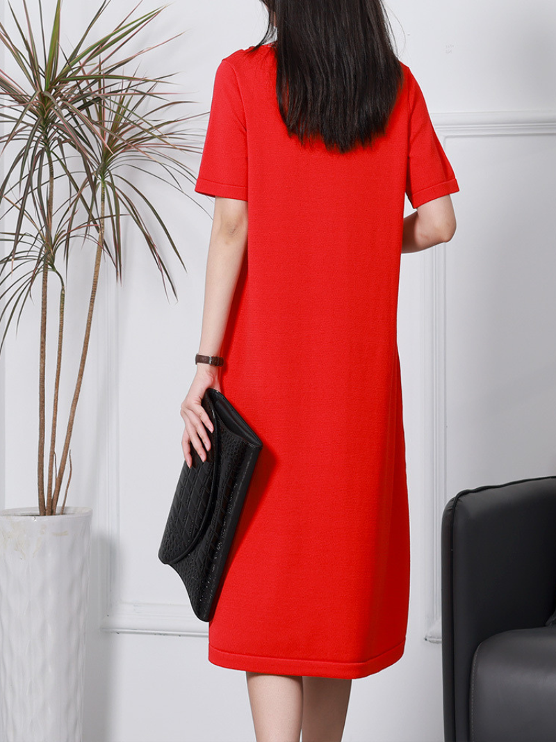This gorgeous V-neck short sleeve top is made from high-quality knitted ice hemp material. which offers a comfortable and breathable fit. Available in both red and black colors. it's easy to find the perfect hue to complement your style. The loose waist design allows for a relaxed and comfortable fit. while the V-neck and short sleeves create a flattering and feminine look. The knitted ice hemp material adds a unique texture and adds a stylish touch to the overall design. Whether you're dressing up for a special occasion or simply running errands around town. this top is the perfect choice for a comfortable and chic look. The combination of high-quality material and attention to detail ensures that this top will become a staple in your wardrobe for years to come.