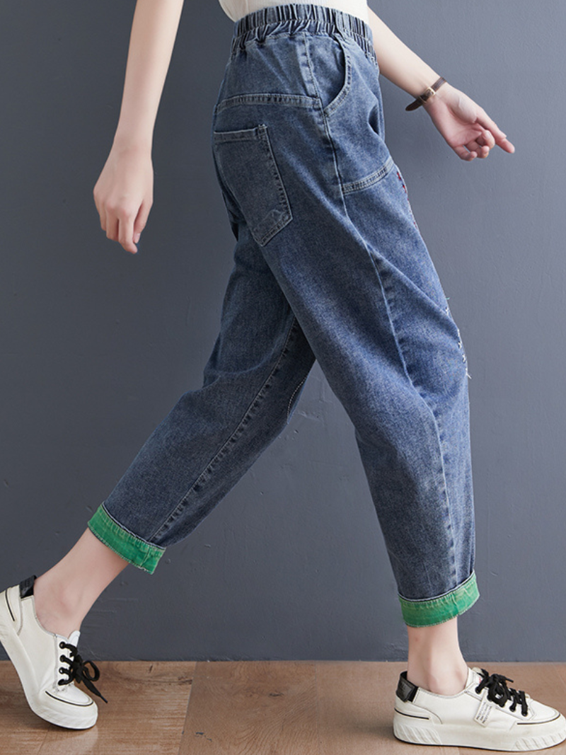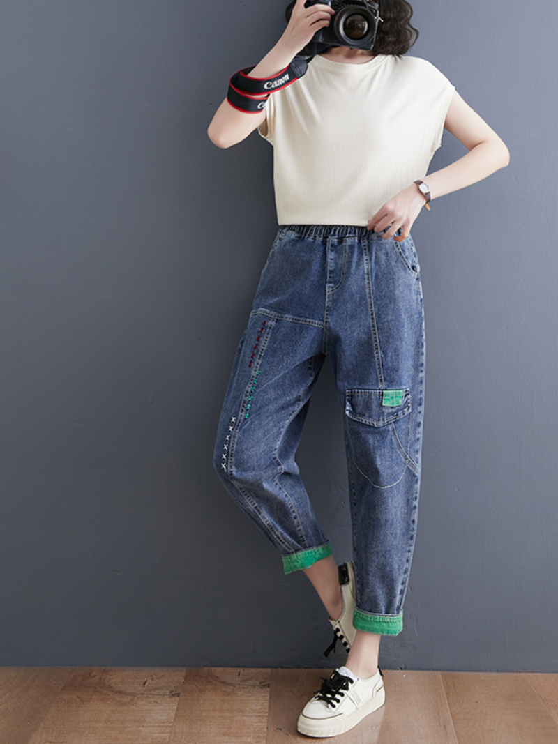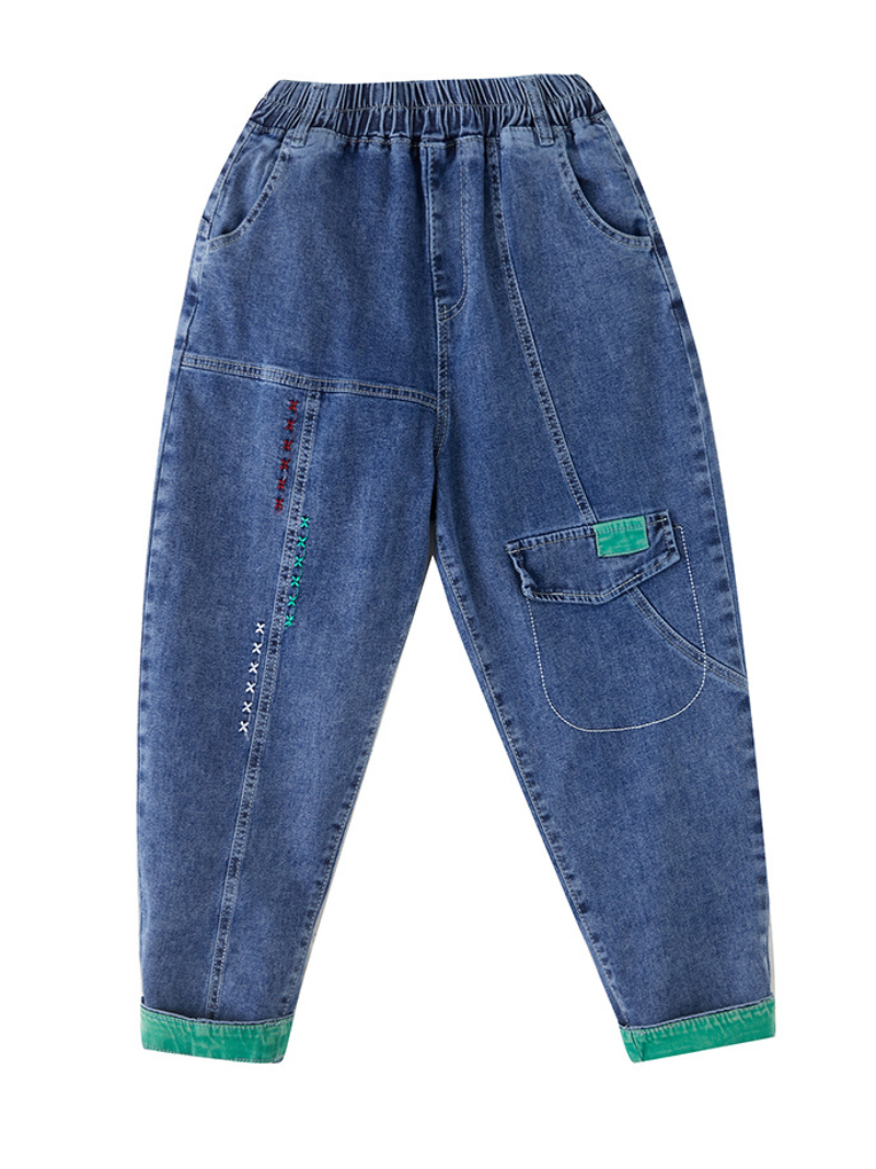 These blue denim Harem pants are the perfect addition to your casual wardrobe. Made from high-quality denim material. they offer a durable and comfortable fit. The high waist design adds a flattering touch to the overall look. while the nine pants length creates a trendy and fashionable silhouette. The harem pants style adds a unique and eye-catching twist. making them perfect for those who love to stand out in a crowd.Available in four different sizes - S. M. L. and XL - these pants are designed to fit a variety of body types. The loose and comfortable fit allows for easy movement. while still maintaining a stylish and fashionable look.