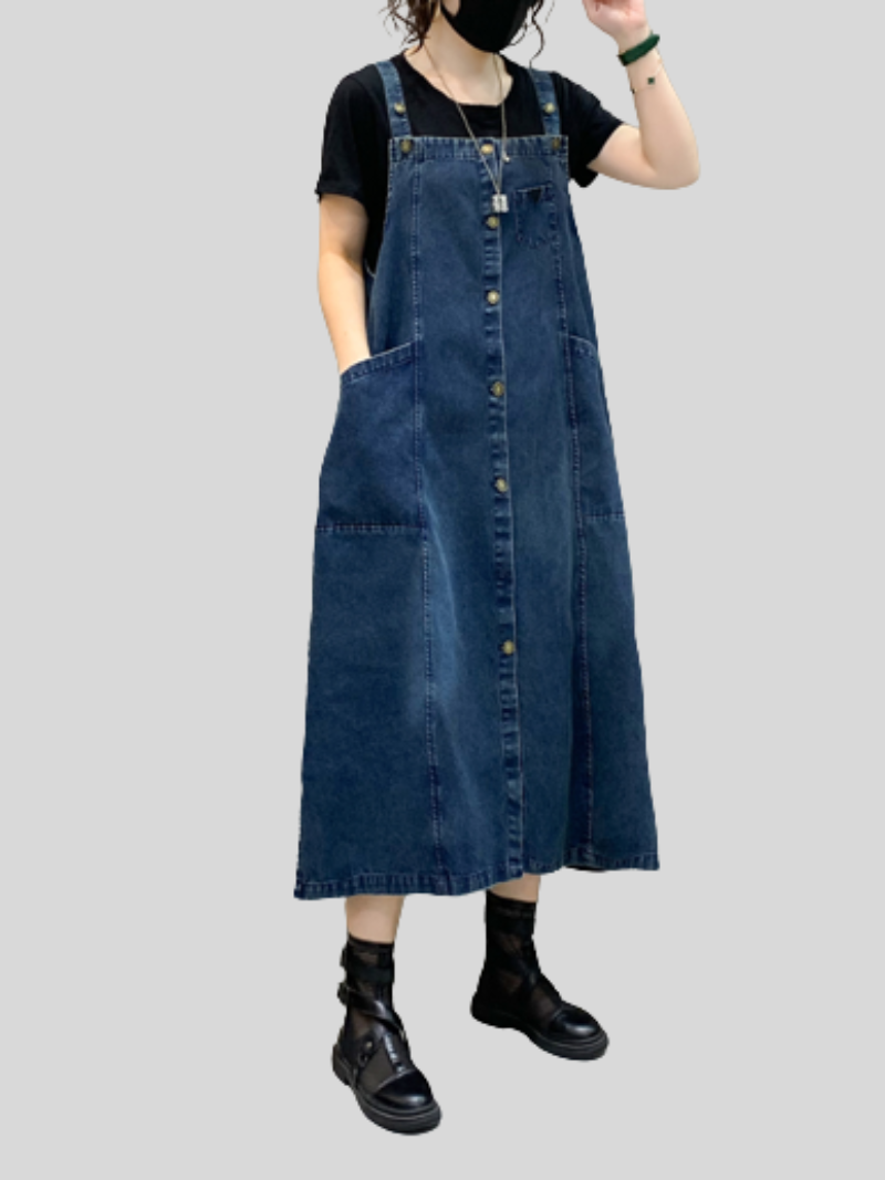 These denim strap overalls are the perfect choice for a trendy and comfortable look. Made from high-quality denim material. they offer both durability and comfort. Available in two classic colors - blue and black - they can easily be paired with a variety of tops to create the perfect outfit.The strap style adds a unique touch. while the sleeveless design makes them perfect for warmer weather. Available in sizes L and XL. you can easily find the perfect fit for your body type.Overall. these denim strap overalls are the perfect choice for a comfortable and stylish look. So. add a touch of fashion-forward style to your wardrobe with these stylish denim overalls.