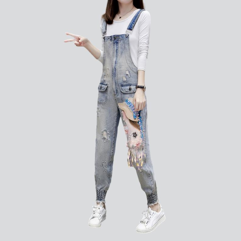 Introducing the 2023 Spring-Summer Collection's must-have �the Women's Head Embroidery Denim Jumpsuit �an exclusive street vibe with a unique blend of boldness and sophistication!