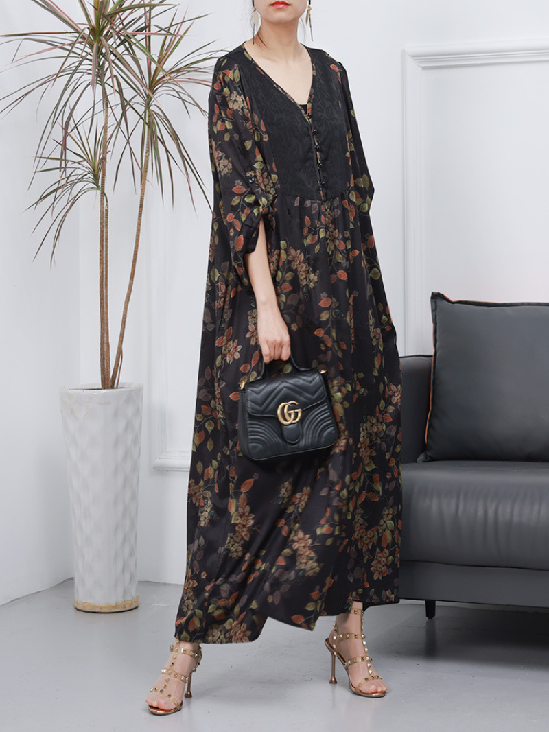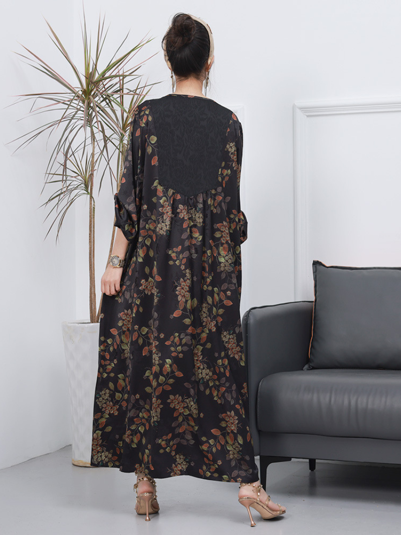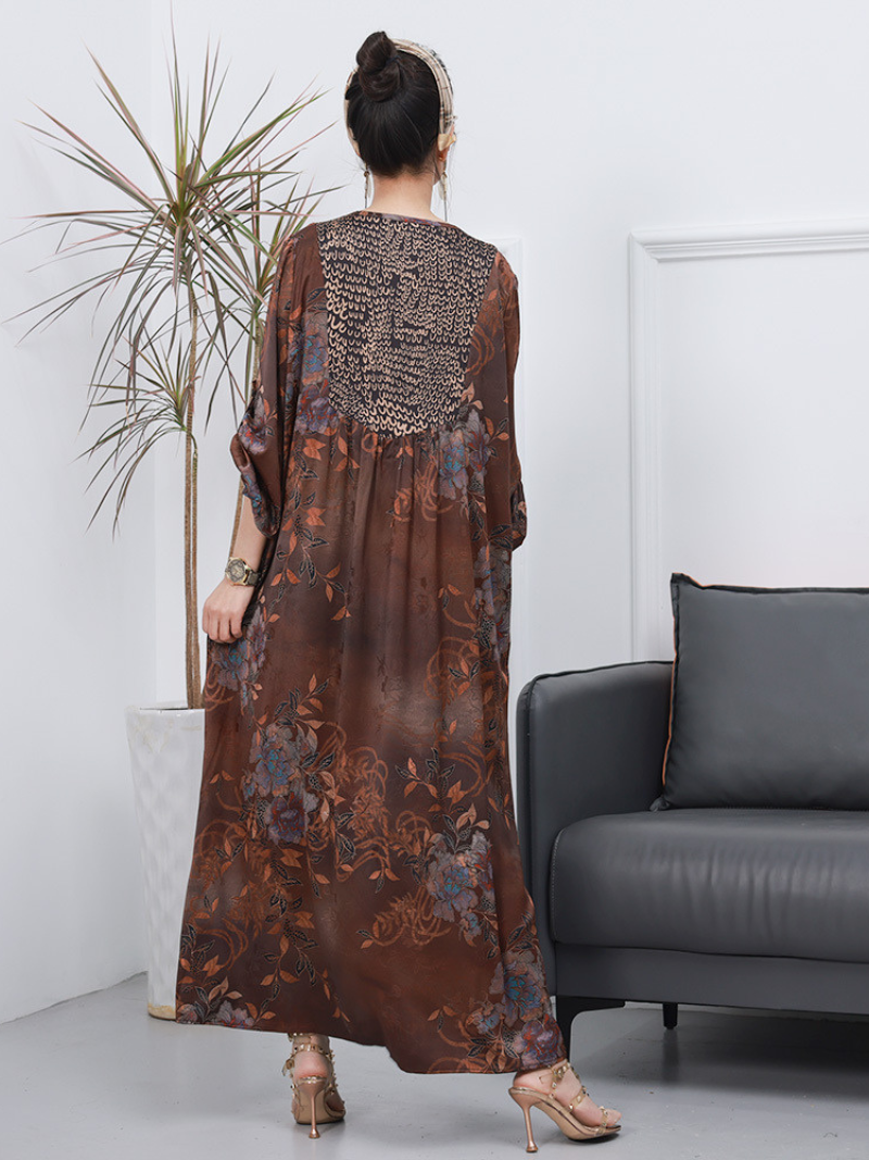 Express your fashion sense with this Women's Retro Style Loose Printed Long Sleeves A-Line Dress. It is made from jacquard fabric that maintains quality. so you'll keep looking great even in formal occasions.It also has two beautiful colours like ( coffee.black ) a round neckline and long sleeves. comfortable to wear. Vintage style and affordable prices are perfect for you to make a fashion statement.