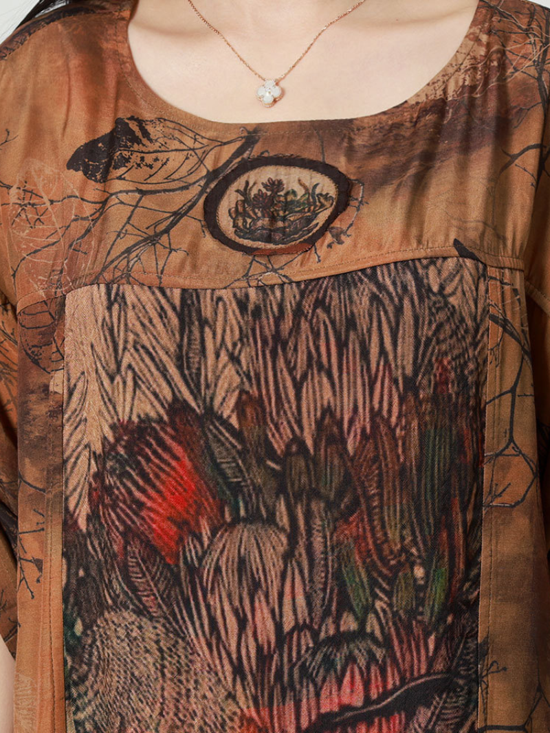 This Women's Summer Casual Half Sleeve Printed Loose Midi Dress is made of lightweight and breathable fabric. perfect for warm weather. This dress is made of silk. giving it a luxurious and smooth texture. It has a loose waist for comfortable and relaxed wear. while the regular sleeves provide coverage and ease of movement. The round neck adds a classic touch to the design. The dress comes in a bright yellow color. perfect for adding a pop of color to any outfit.The sleeves are half-length. providing a bit of coverage while still keeping you cool. This dress is ideal for casual outings and can be dressed up or down with accessories.