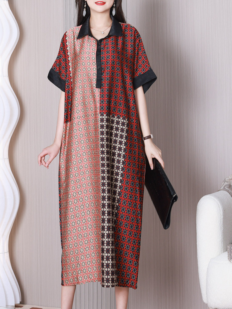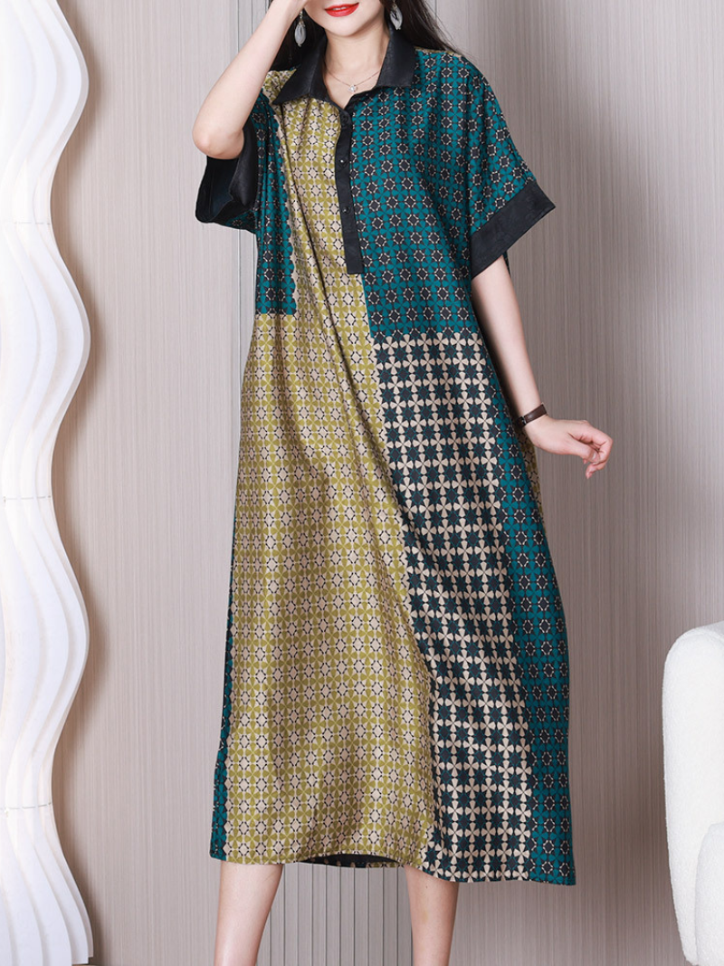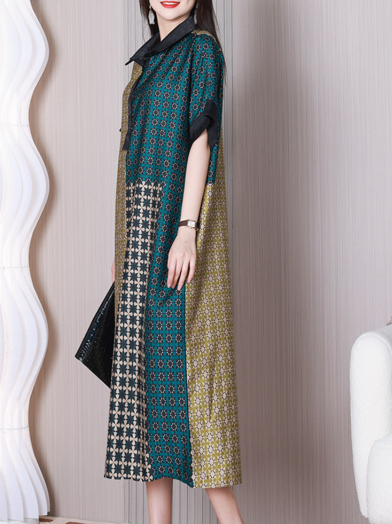 The Women's Lapel Collar Middle Waist A-line Dress is a stylish and sophisticated piece of clothing designed to flatter the female figure. This dress features a lapel collar that gives it a polished and refined look.it has green and red color variations.The middle waist of the dress accentuates the natural curves of the body. creating an hourglass silhouette that is both elegant and flattering. This dress can be dressed up with heels and statement jewellery for a formal occasion. or dressed down with sandals and a denim jacket for a more casual look.This Dress is a versatile addition to any wardrobe and is suitable for a range of occasions.