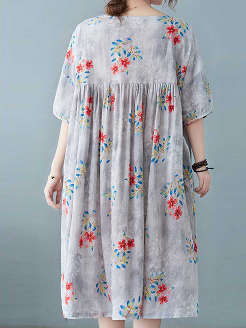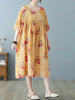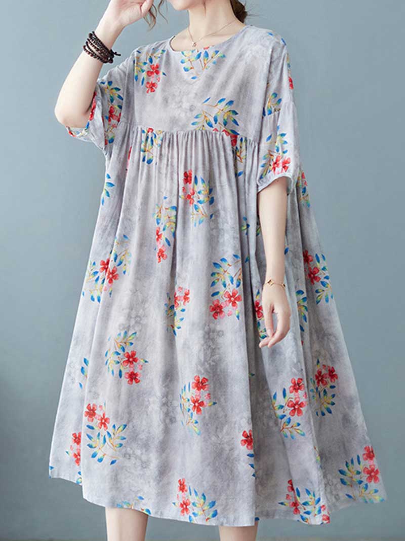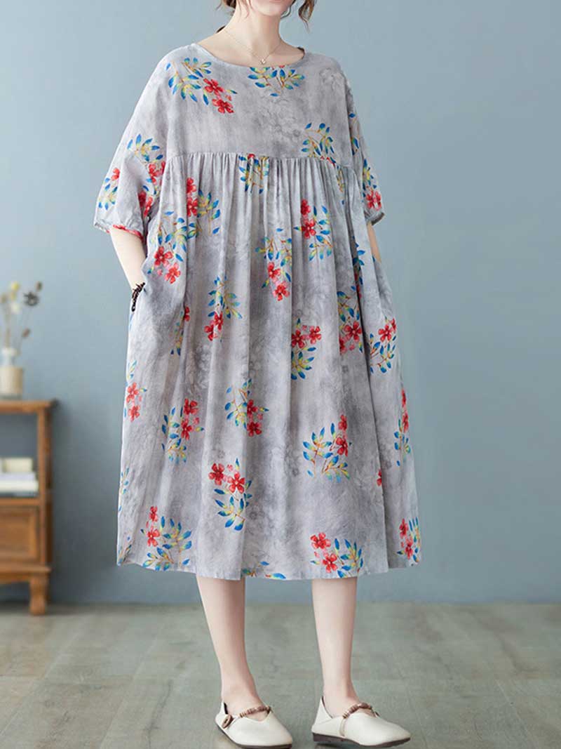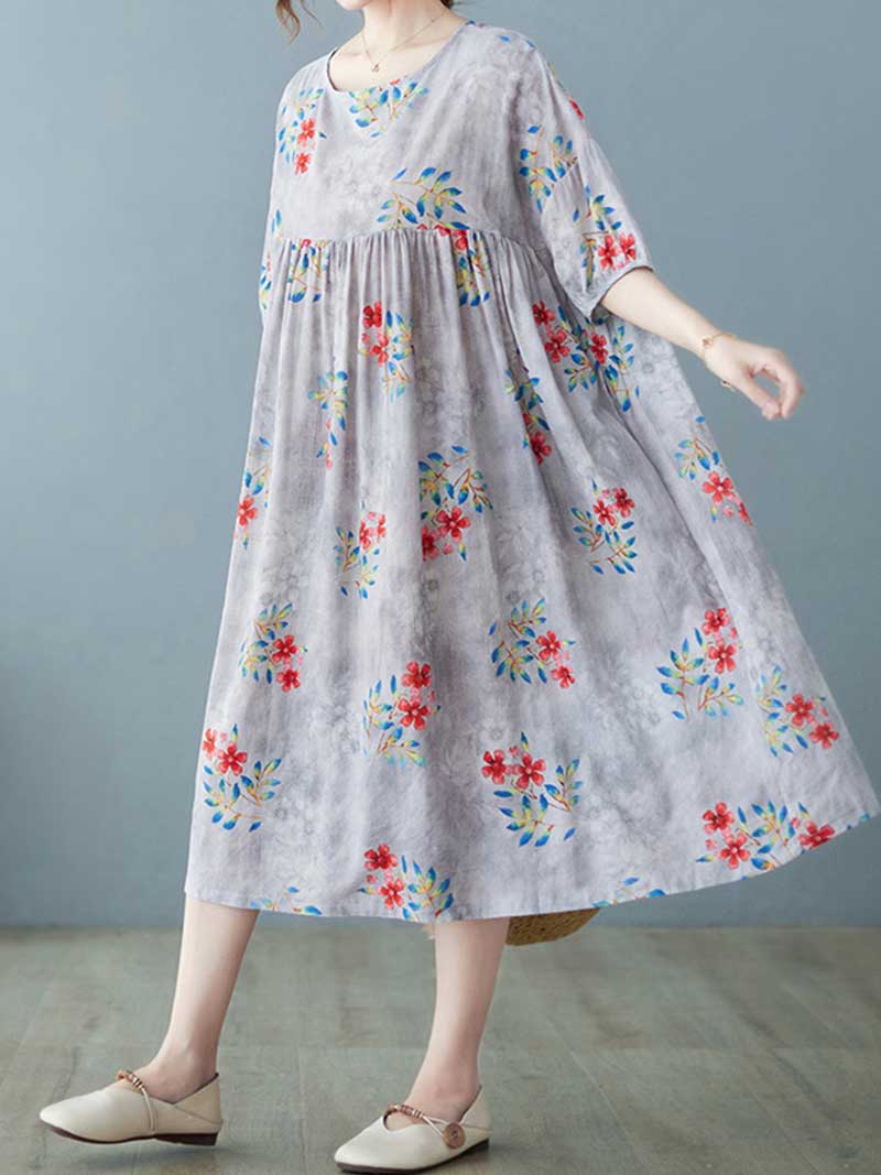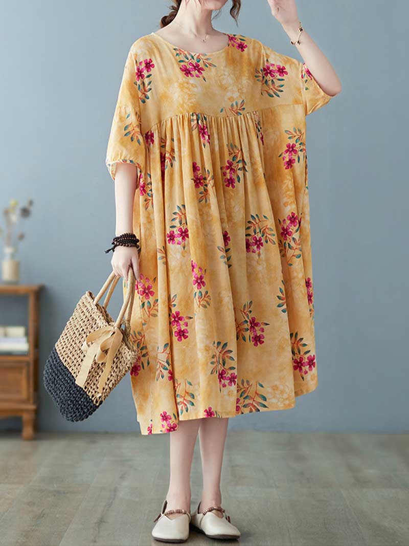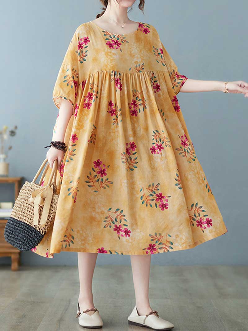 This comfortable and stylish dress is perfect for hot summer days or cool autumn evenings. The soft cotton material will keep you comfortable while the pretty floral print adds a touch of feminine flair. Short sleeves make it perfect for warm weather. and the loose fit ensures a relaxed and flattering silhouette. Choose yellow for a cheerful pop of color or grey for a classic look.