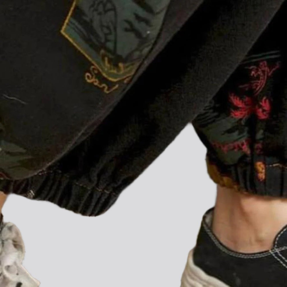 This Y2K inspired jumpsuit is sure to be a head-turner. The unique combination of painted details. free fit. dark wash. and rubber leg hem will give you an effortlessly cool look that will make you the envy of all your friends. With this jumpsuit. you'll be able to make a fashion statement wherever you go!